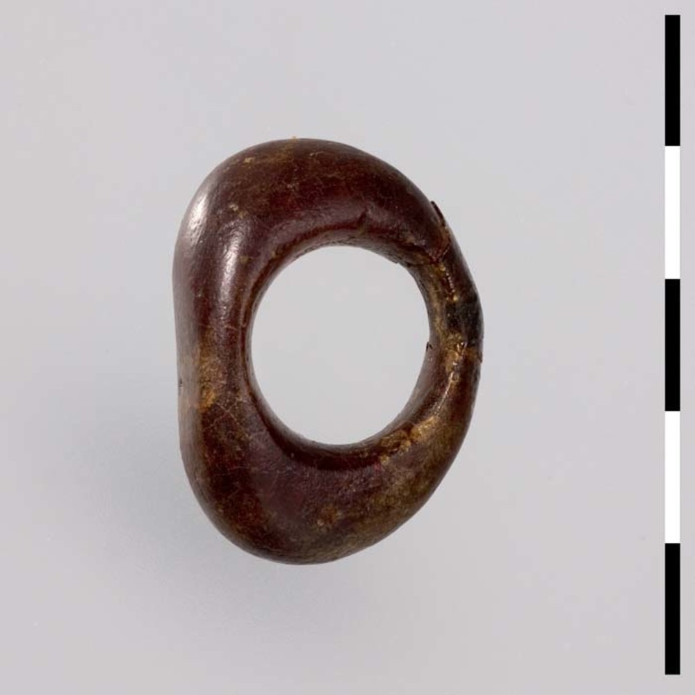 Rondgebogen scharnierfibula van vertind brons uit de...