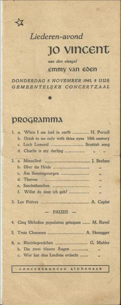 liederen-avond - Jo Vincent, donderdag 8 november 1945
