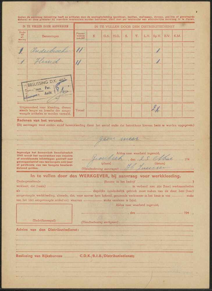Aanvraag voor extra textielgoederen, Groesbeek