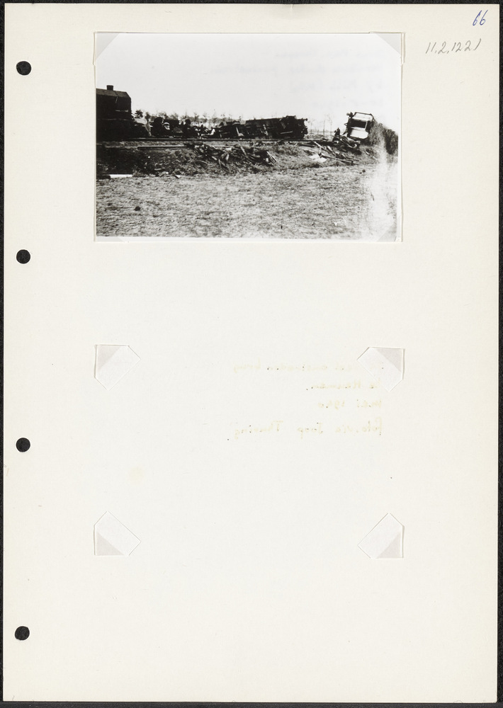 Foto ontspoorde trein. Tekst achterop; "Door Ned. tr...