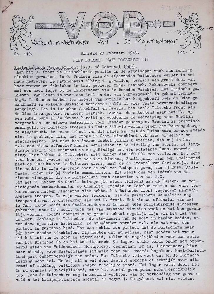 V.O.D. Voorlichtingsdienst van Je Maintiendrai, No. ...
