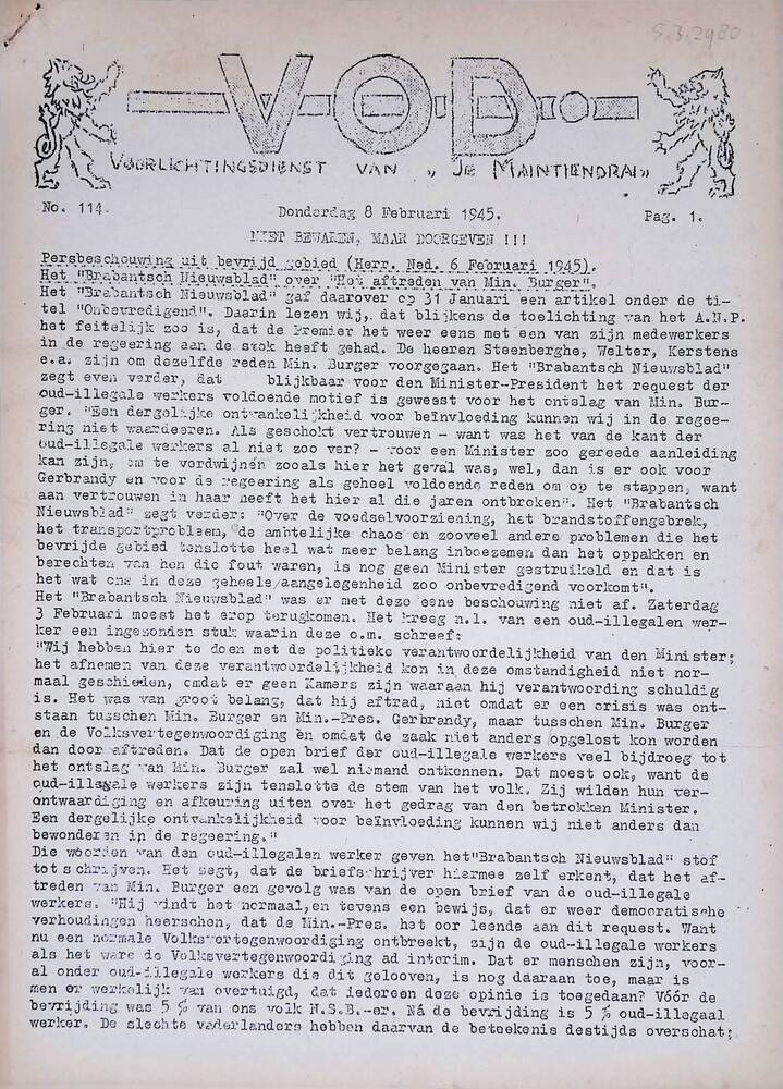V.O.D. Voorlichtingsdienst van Je Maintiendrai, No. ...