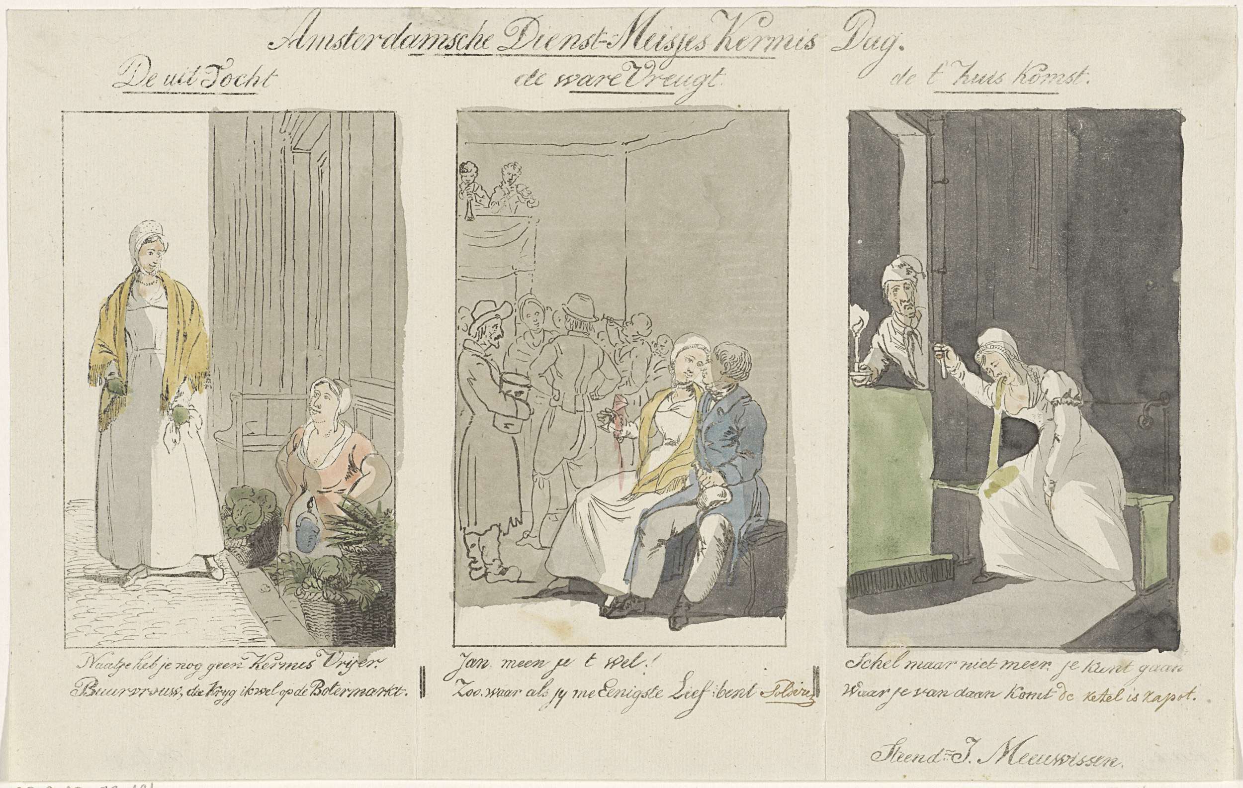 Spotprent op de Amsterdamse dienstmeisjes die zich m...