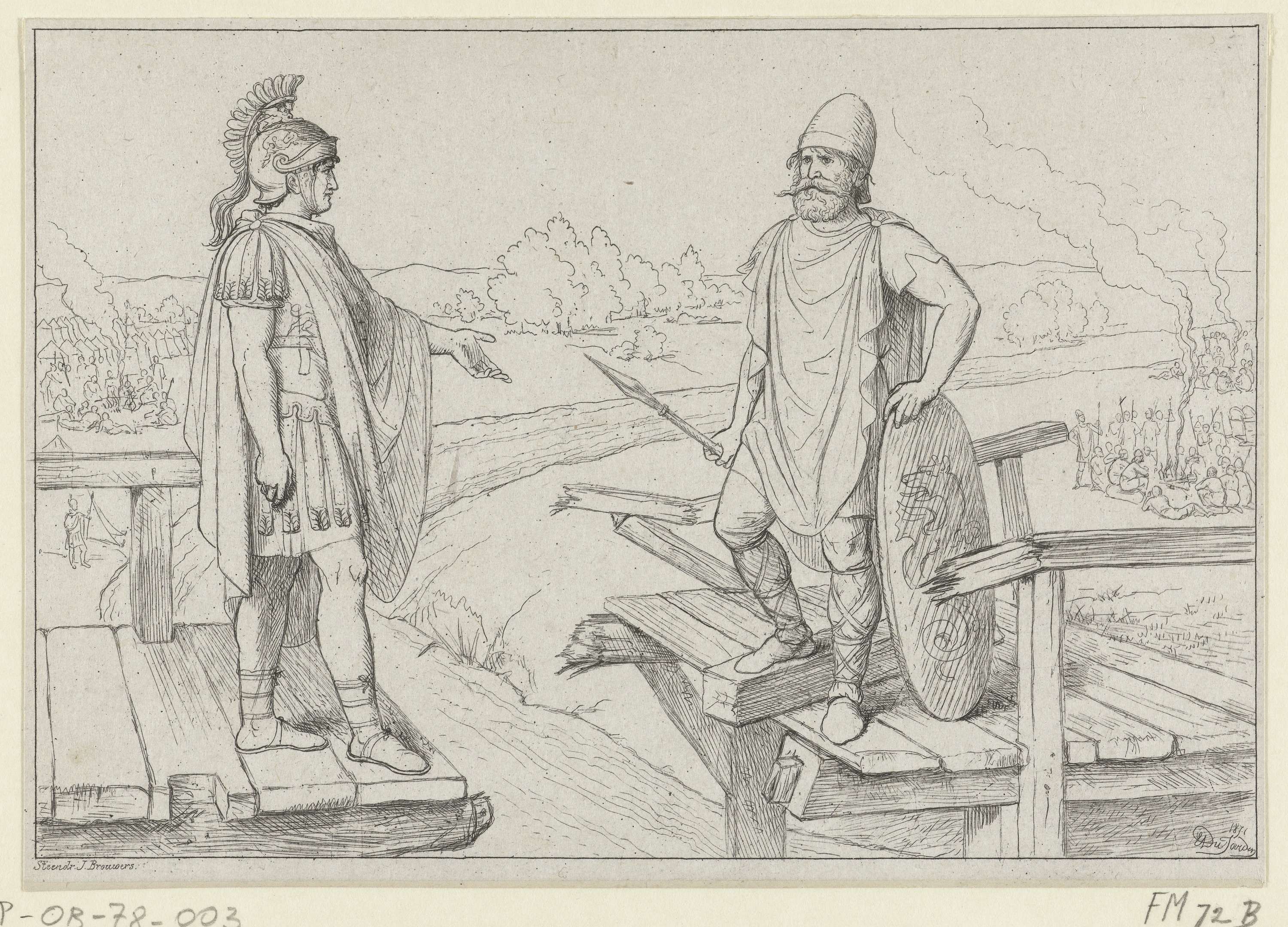 Civilis en Cerialis onderhandelen op de afgebroken b...
