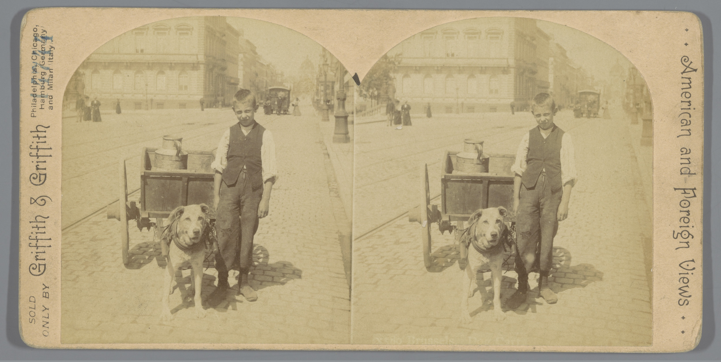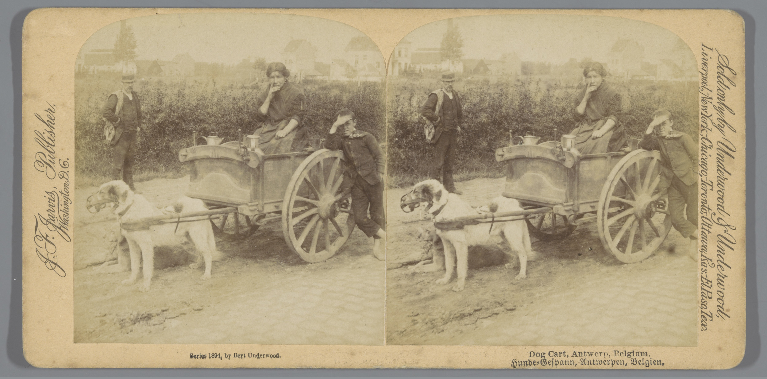 Kar voortgetrokken door twee trekhonden nabij Antwerpen