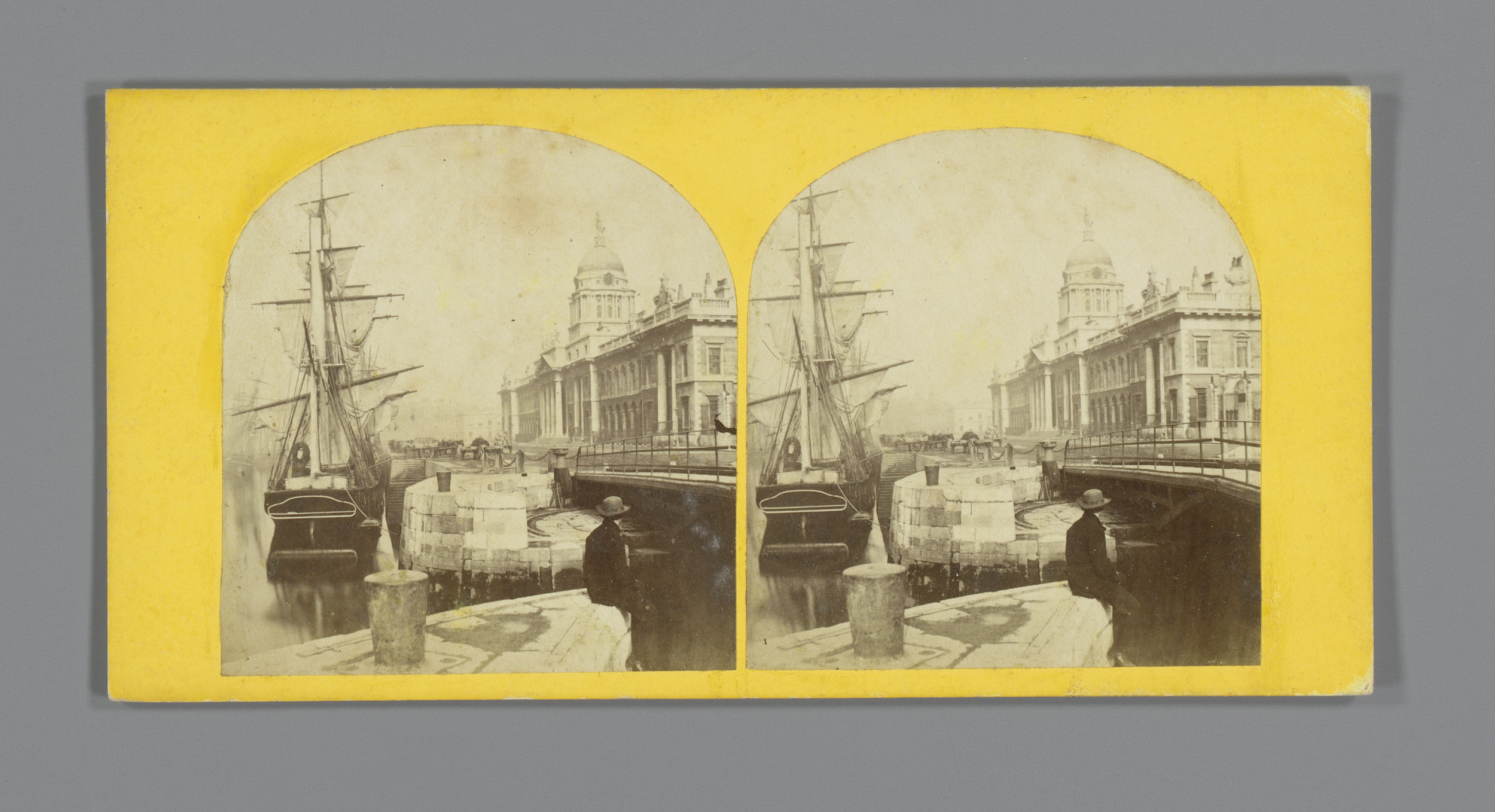Gezicht op de noordkade van de Liffey in Dublin en h...