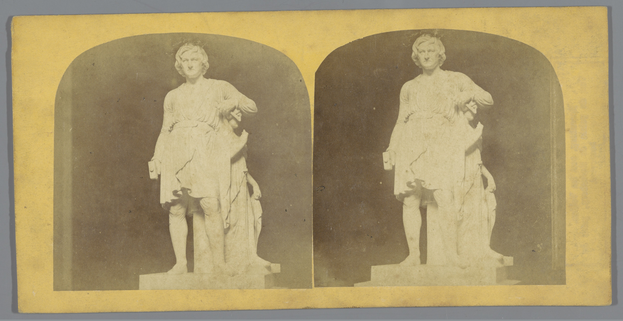 Zelfportret van Bertel Thorvaldsen en het standbeeld...