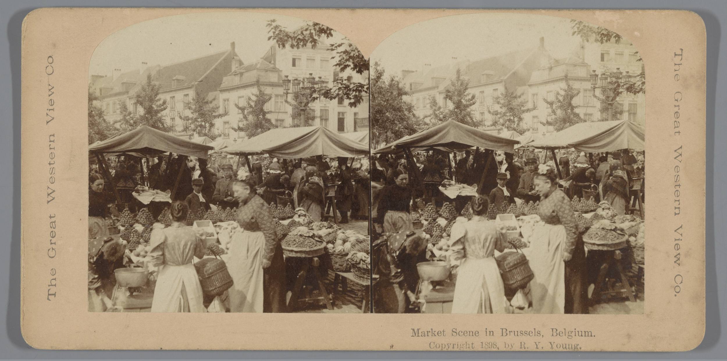 Gezicht op de Grote Markt met het standbeeld van Mar...