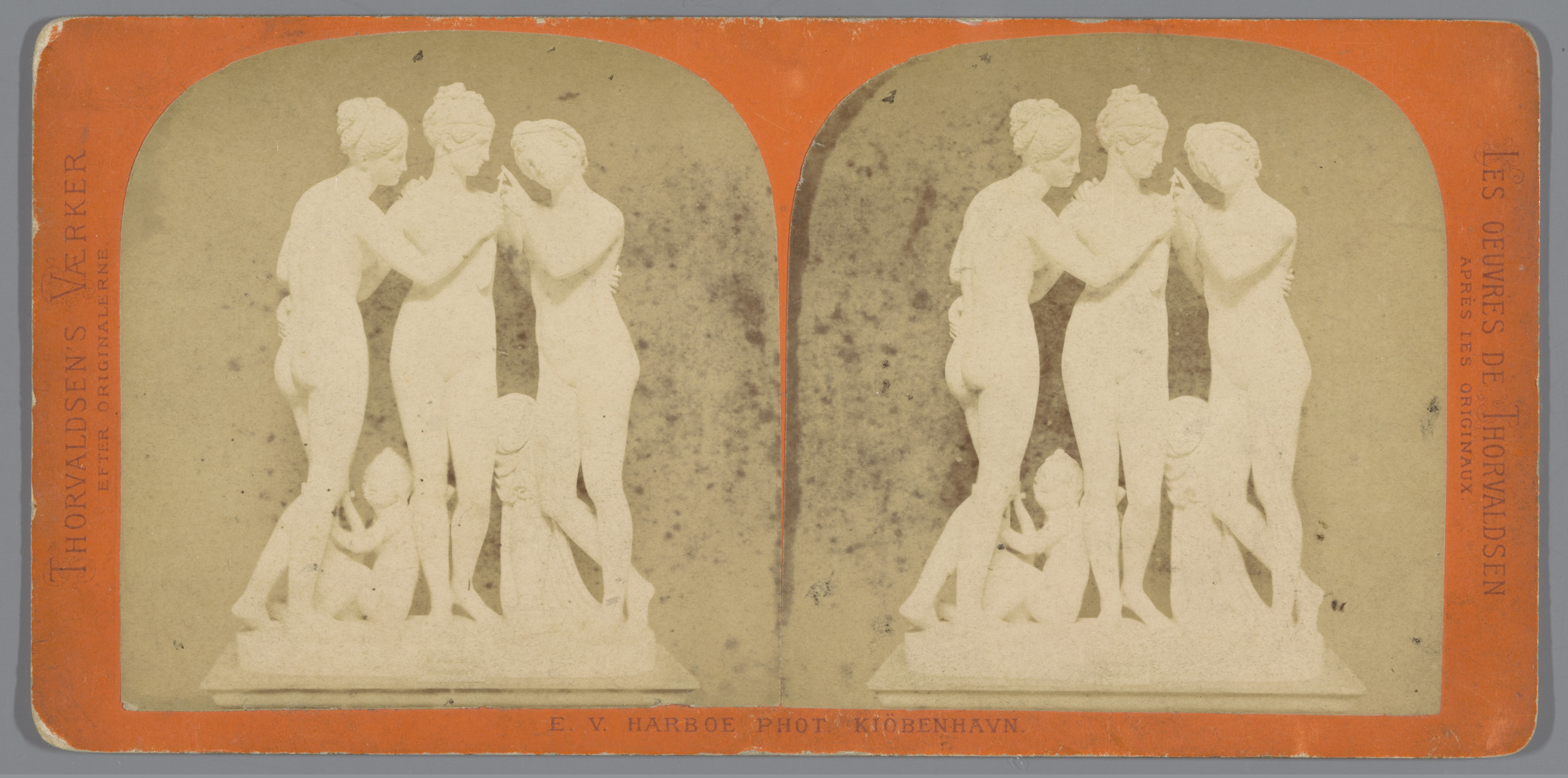 Sculptuur van Cupido en de drie gratiën door Bertel ...