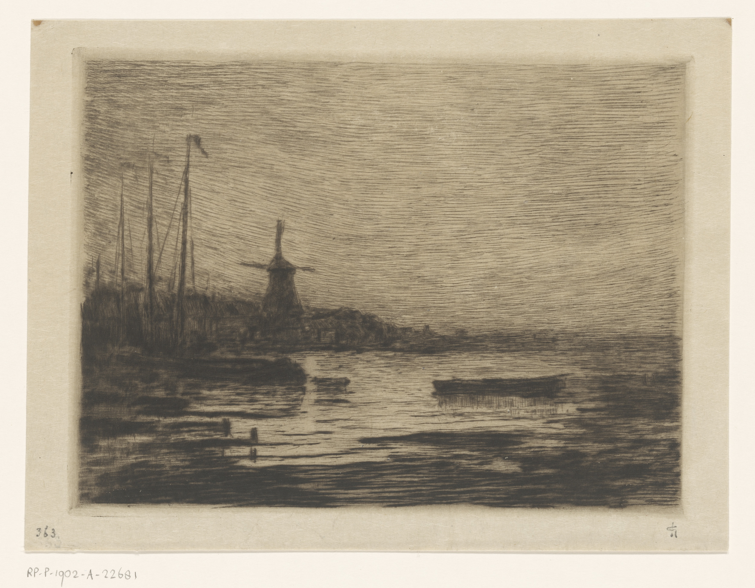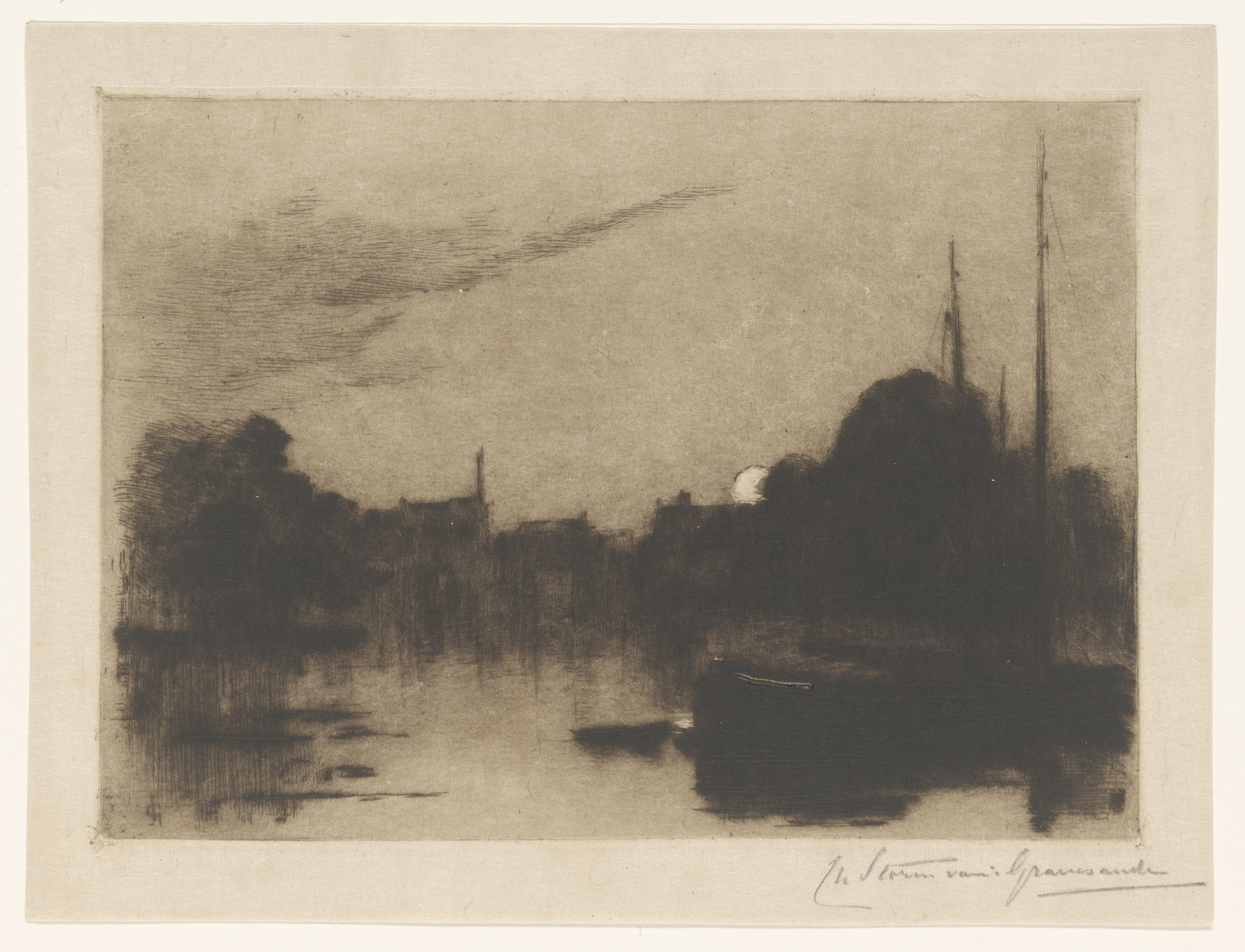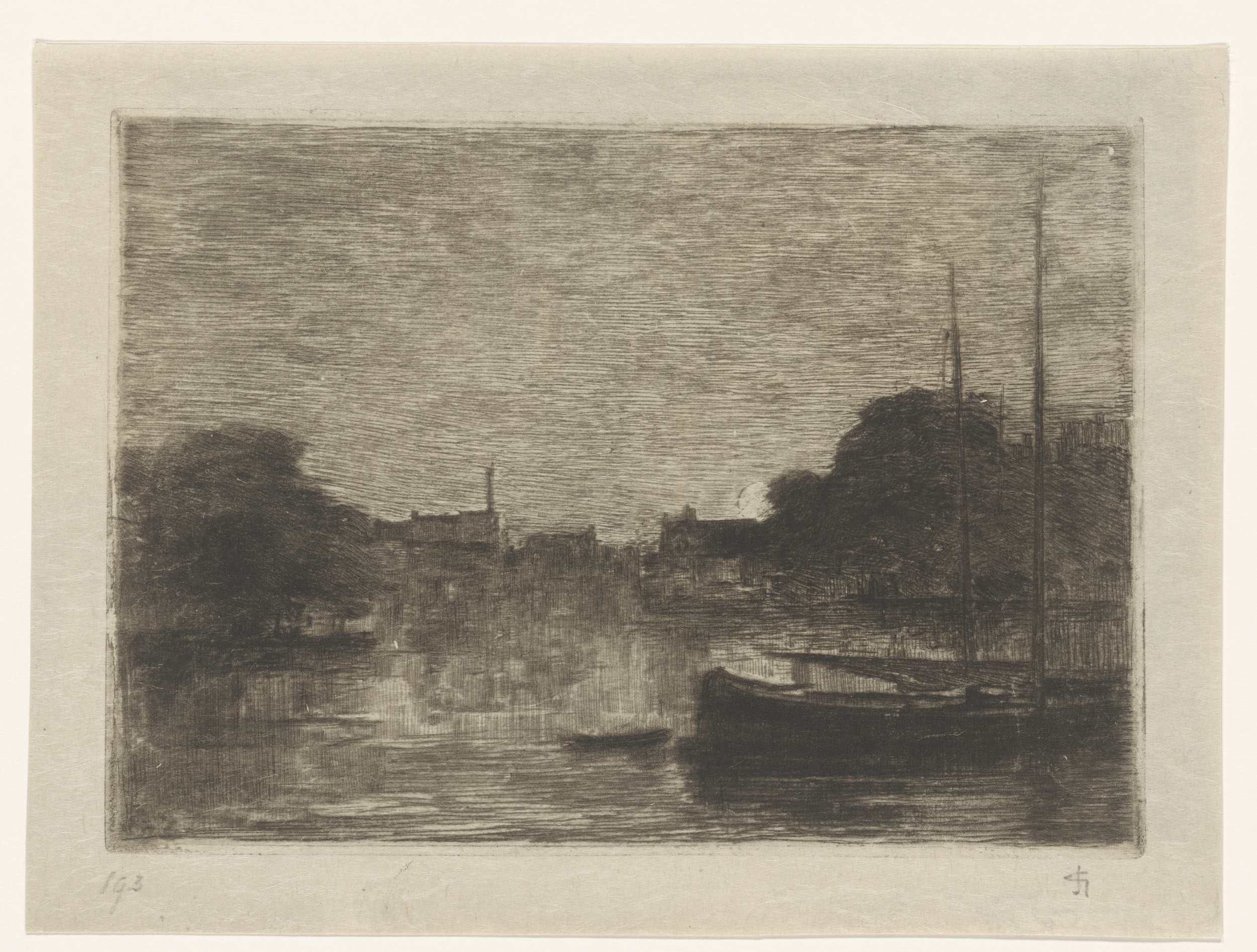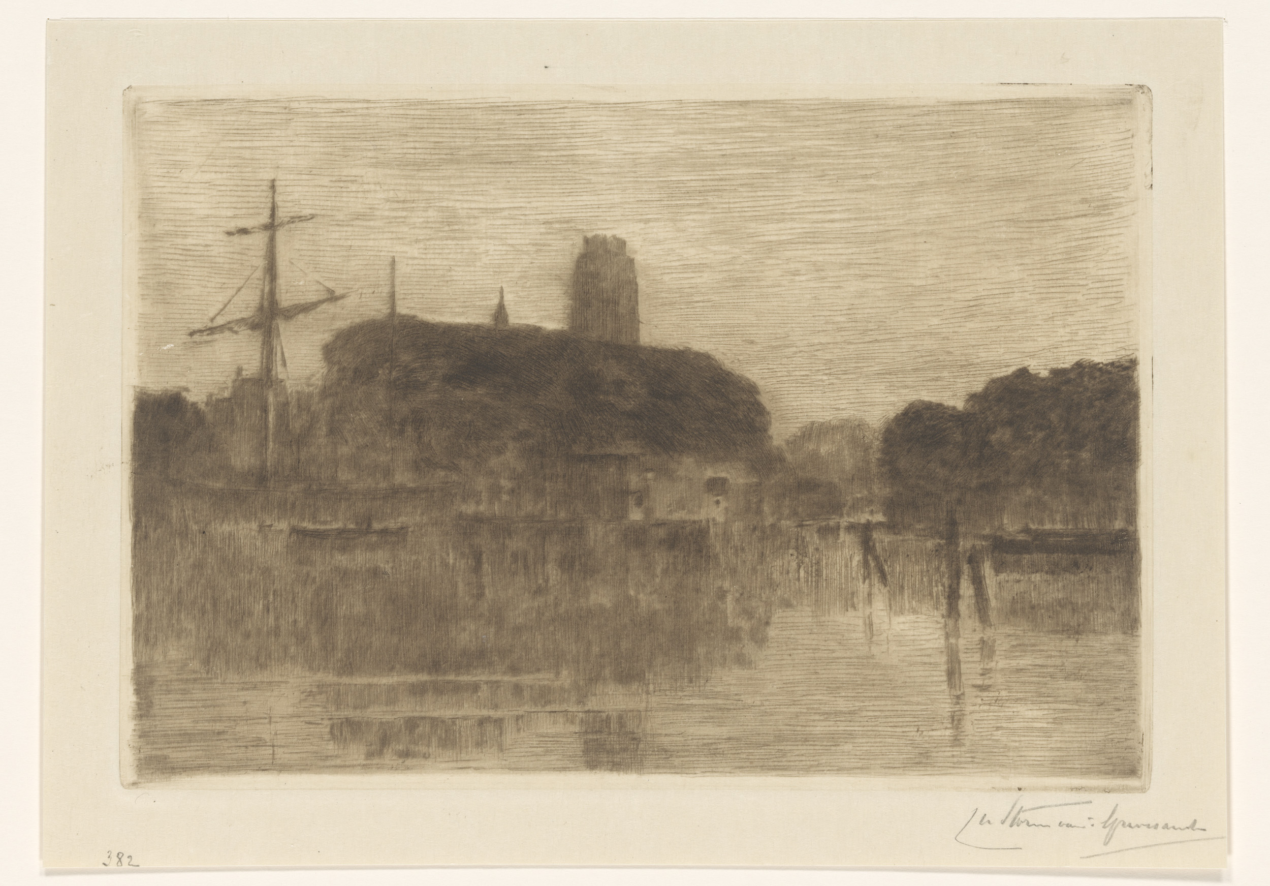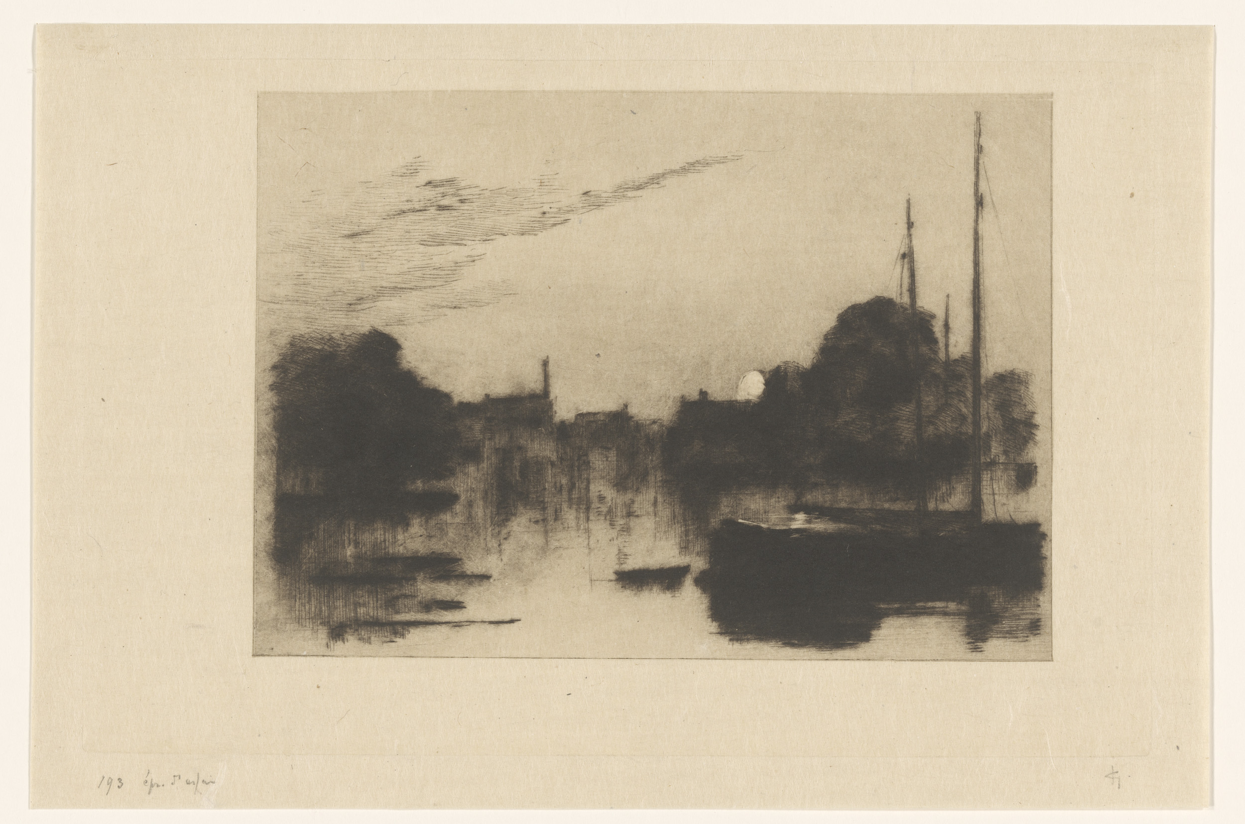 Gezicht op de Nieuwe Haven in Dordrecht bij avond