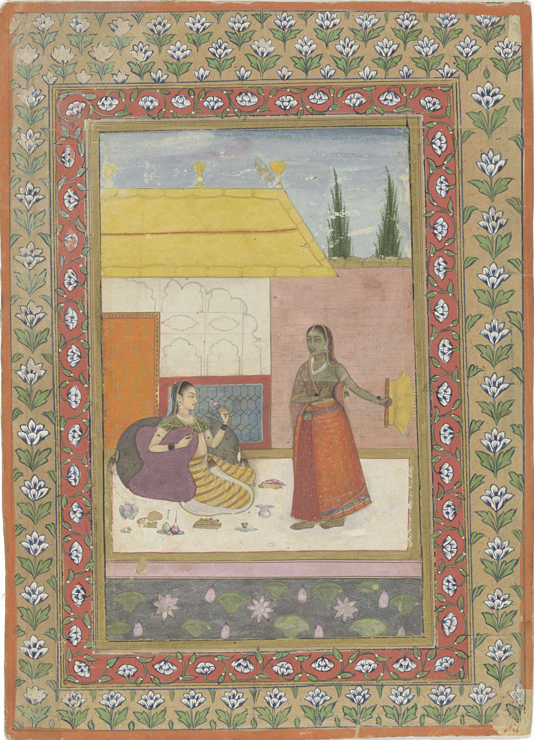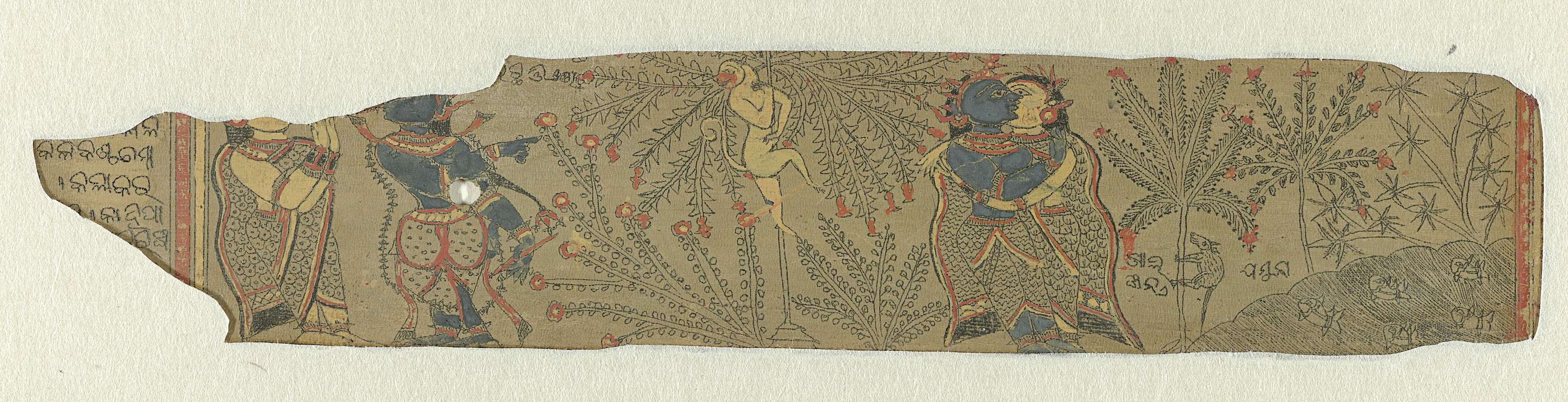 Twee panelen met Krishna en Radha in gesprek, in het...