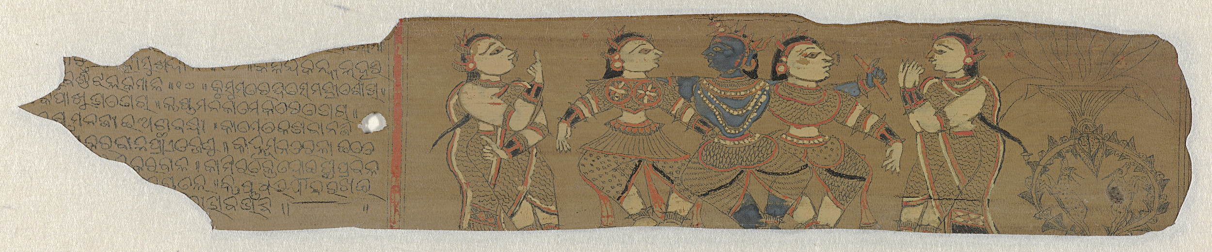 Krishna temidden van vier dansende dames
