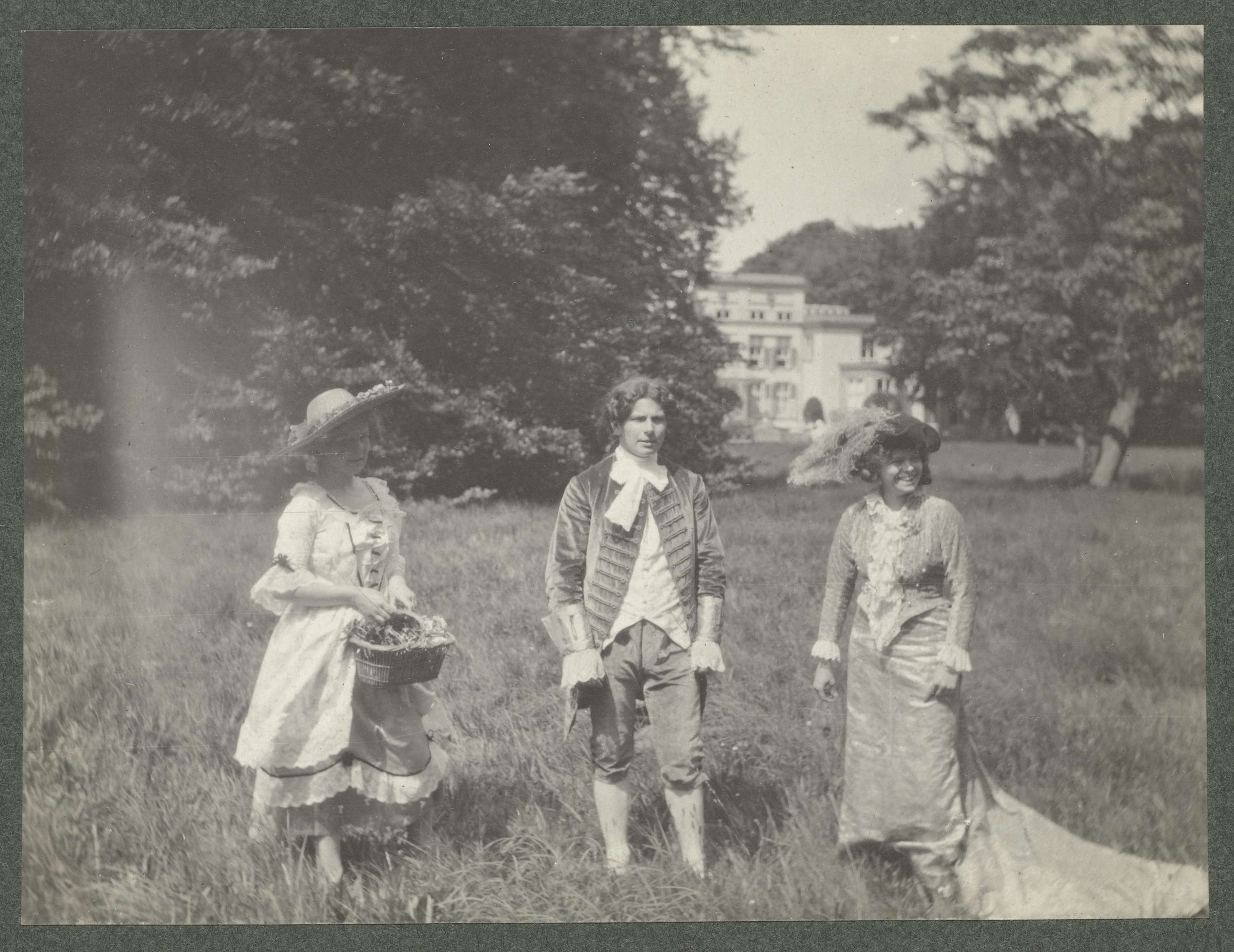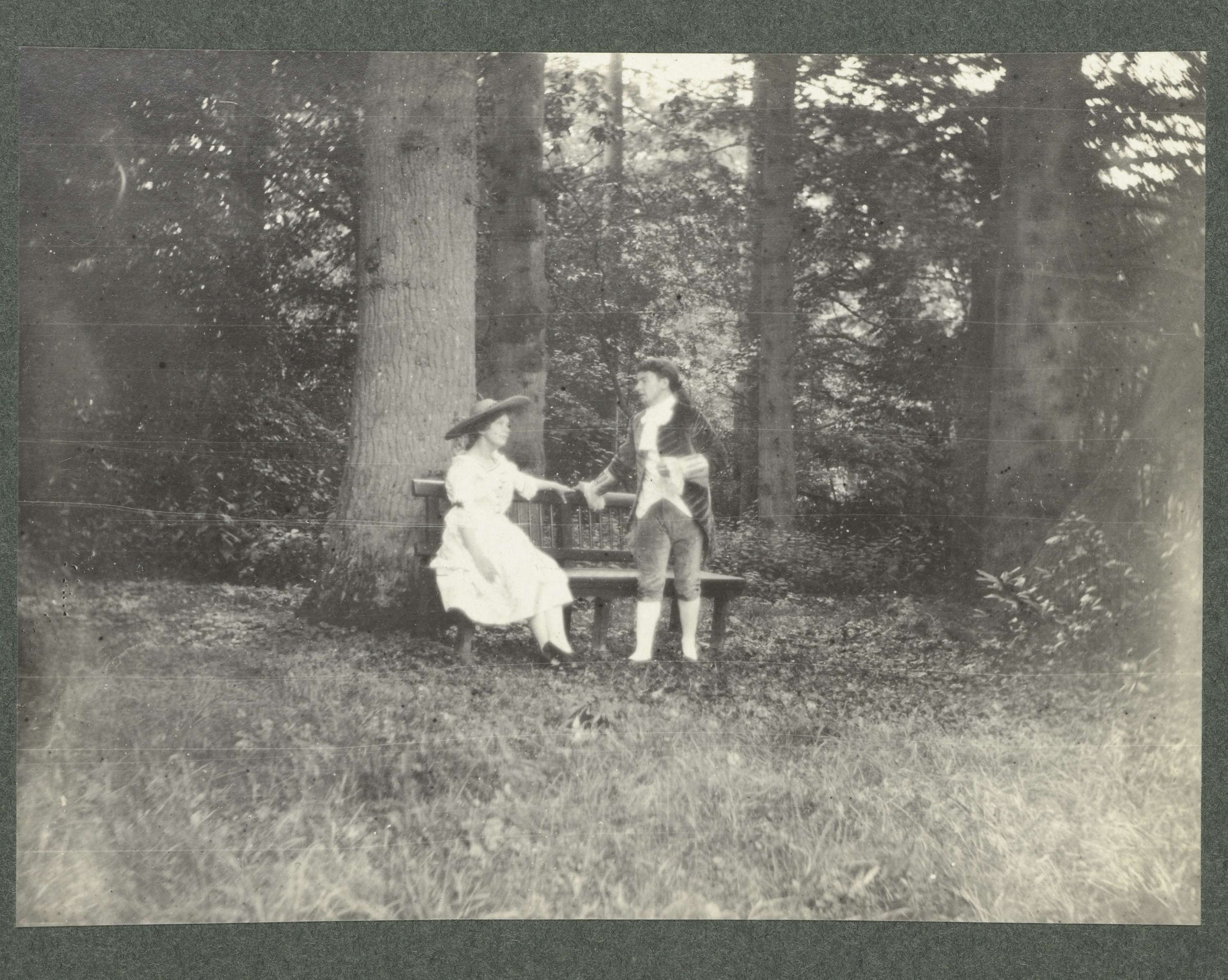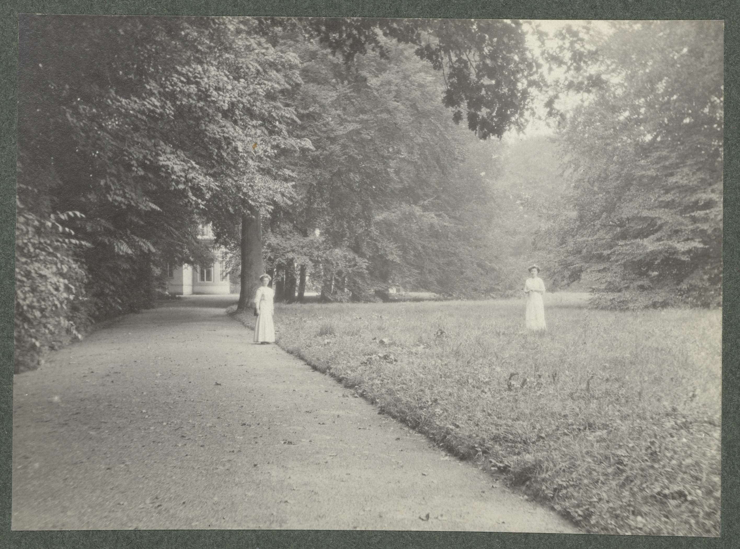 Twee dames Kessler op een tuinpad bij Landgoed De Paauw