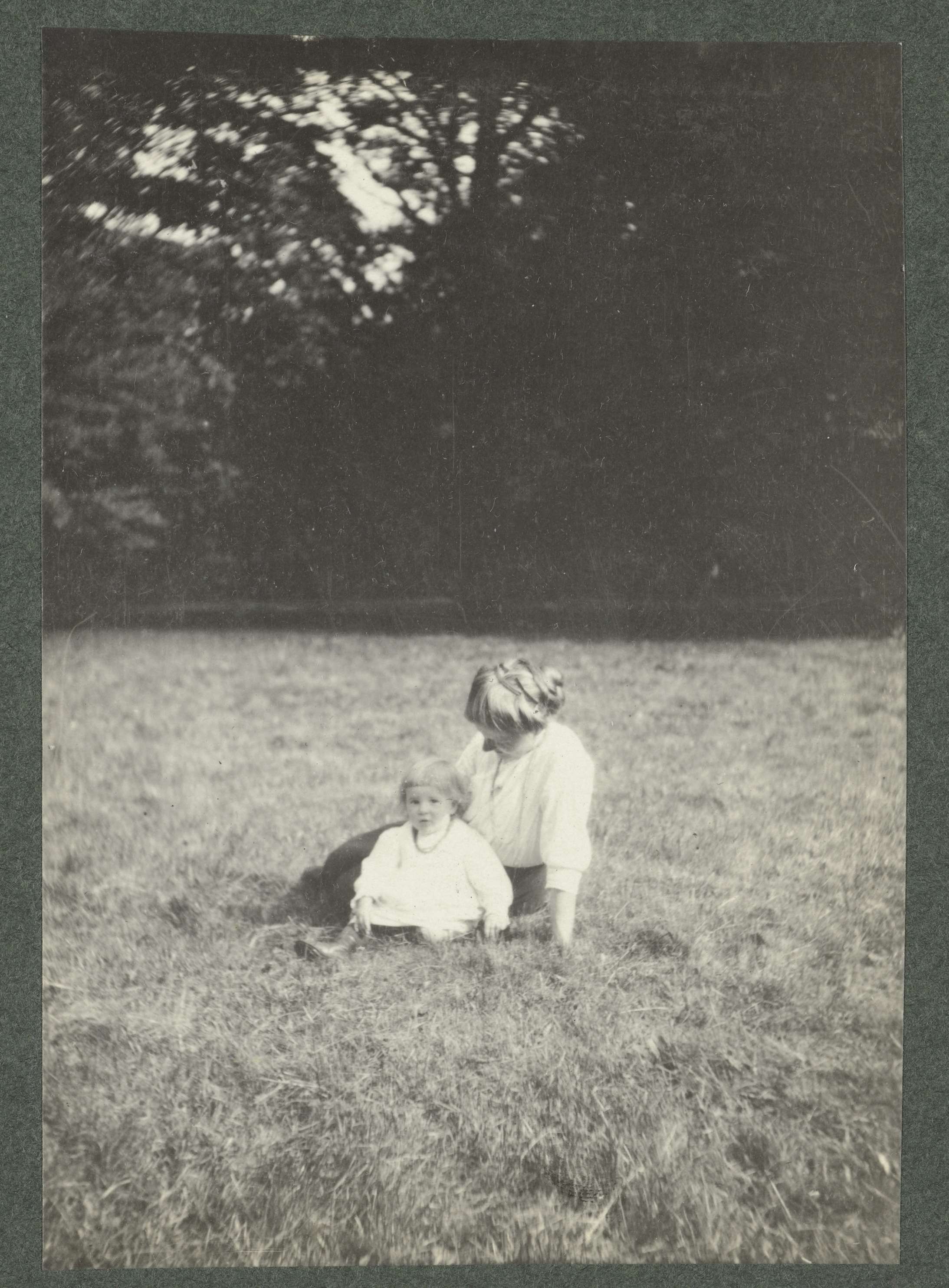 Moeder en dochter zitten op het gras, Landgoed De Paauw