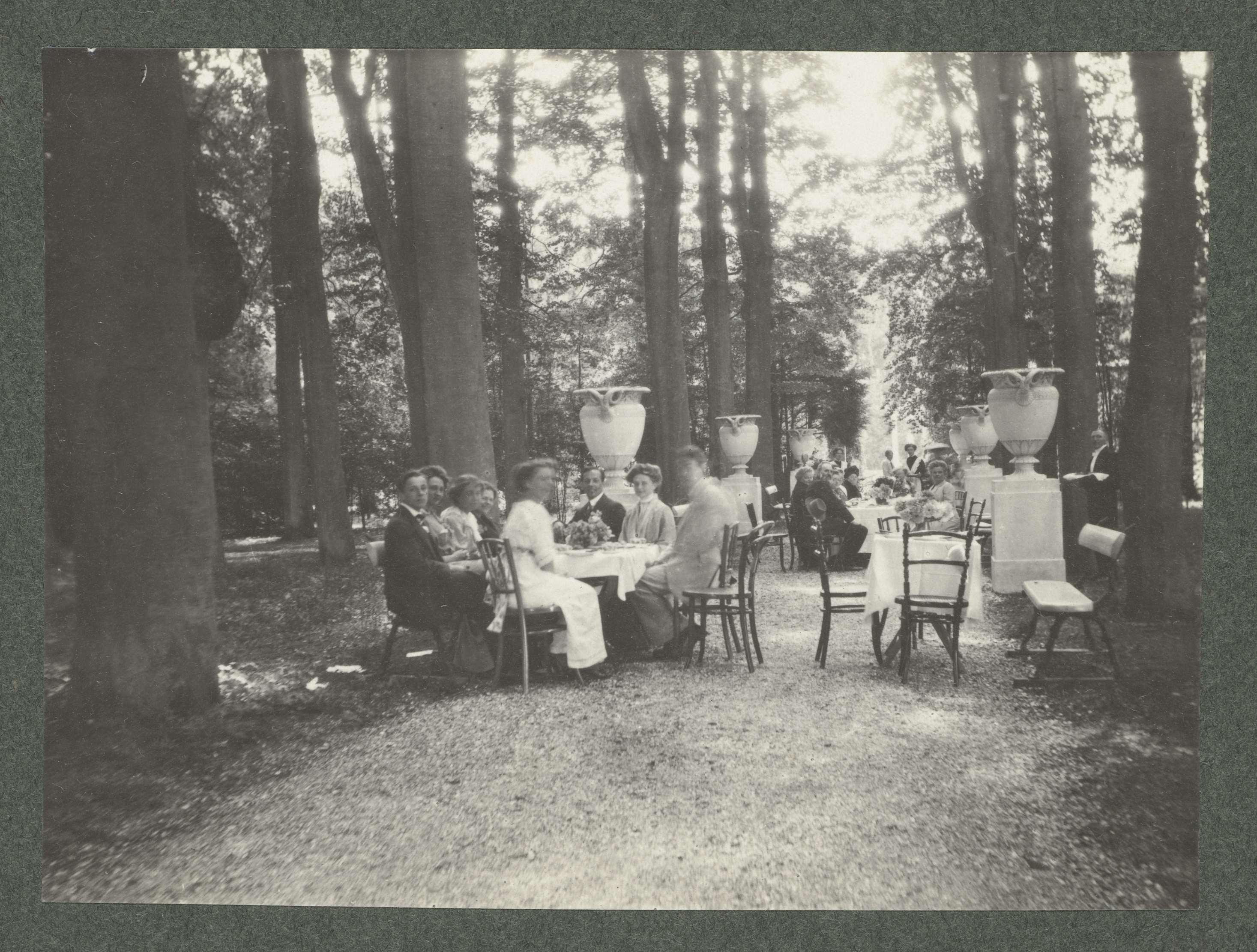 Familie Kessler dineert in de tuin van landgoed De Pauw