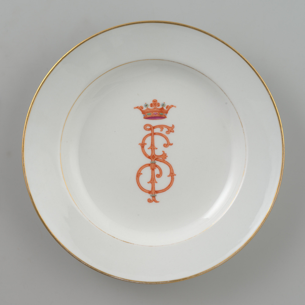 Bord met monogram 'SF'