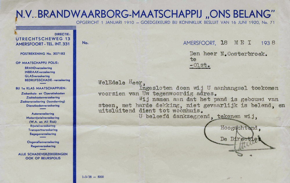 brandpolis N.V. Brandwaarborg-Maatschappij 'Ons Bela...