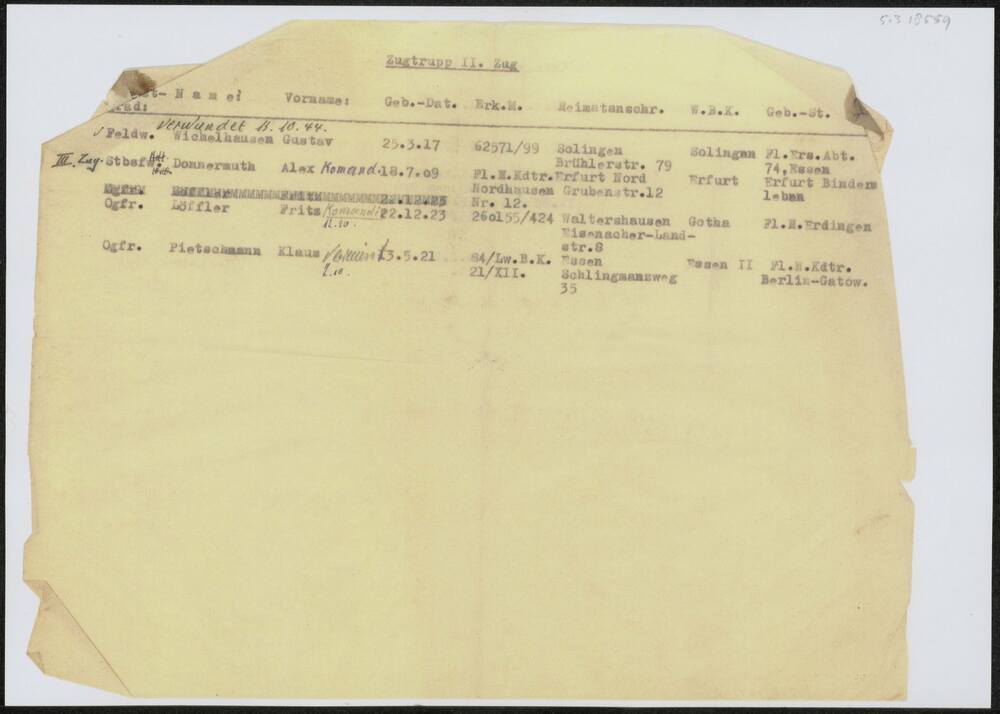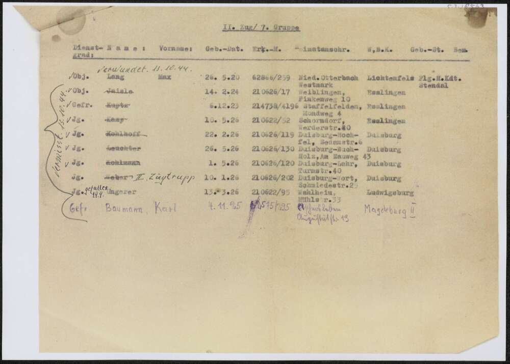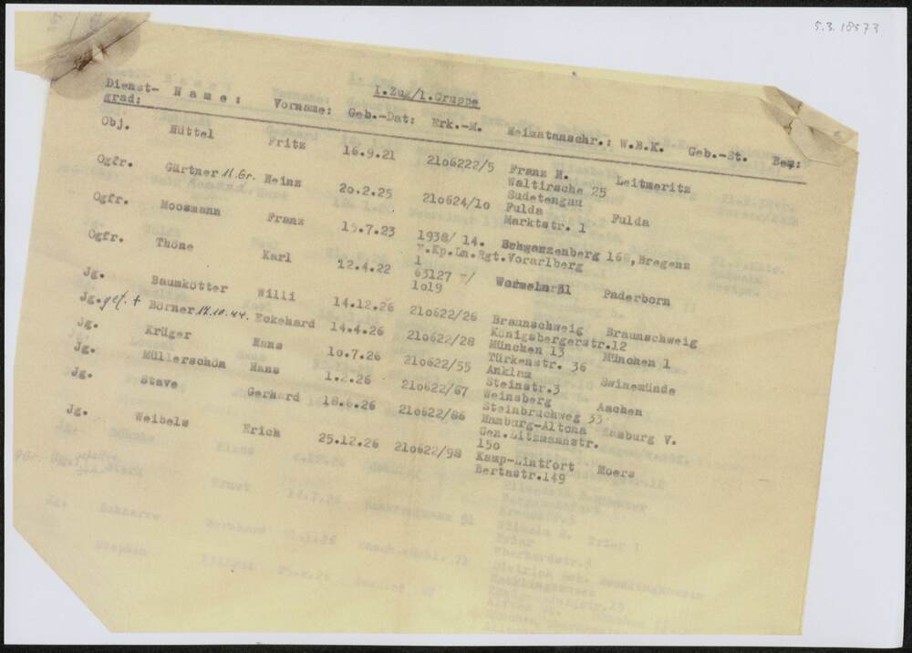 Vel met namen Duitse militairen .