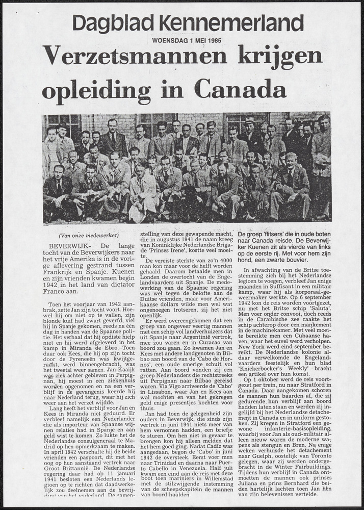 Verzetsmannen krijgen opleiding in Canada
