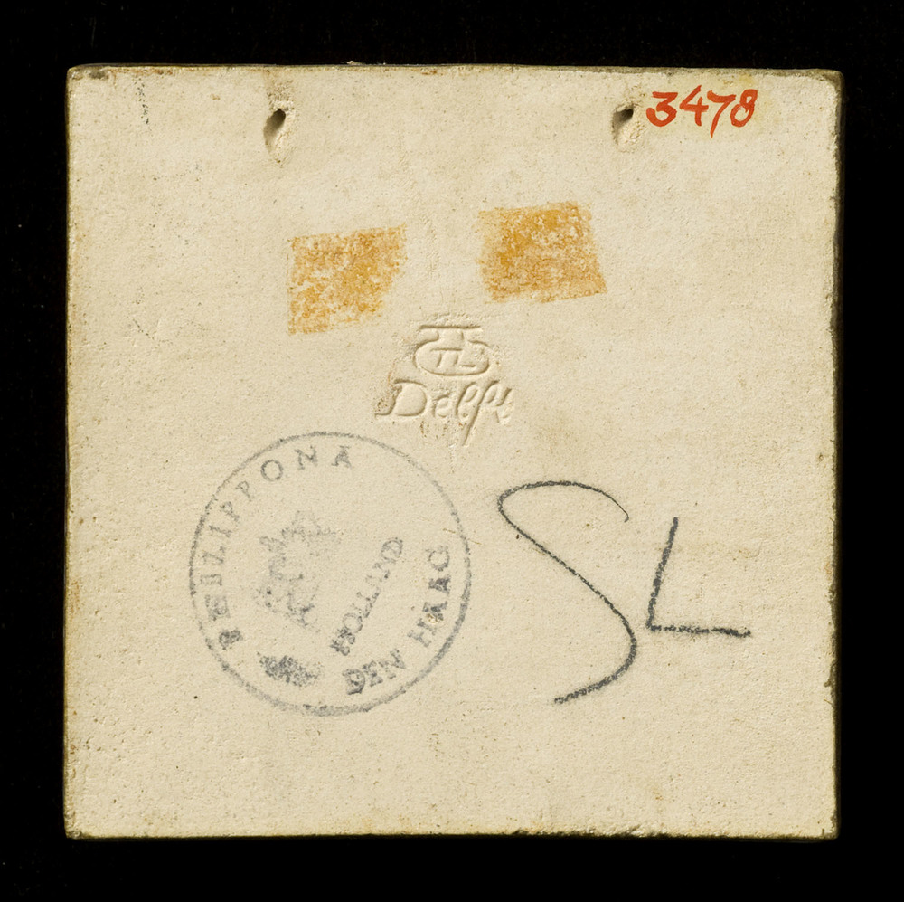 Tegel van keramiek met tinglazuur, voorstellende: or...