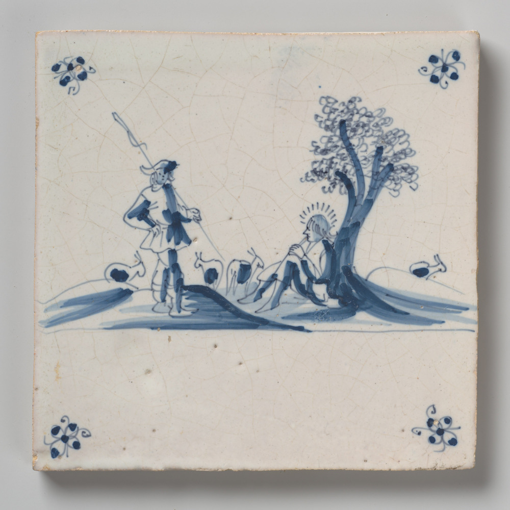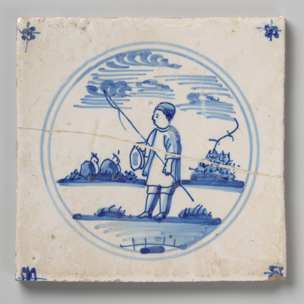 tegel van aardewerk met tinglazuur, voorstellende: P...