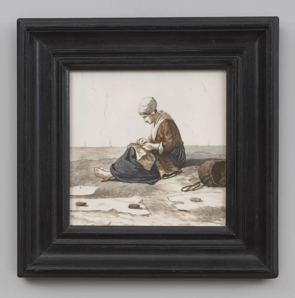 tegel van aardewerk in koudlak, voorstellende: verst...