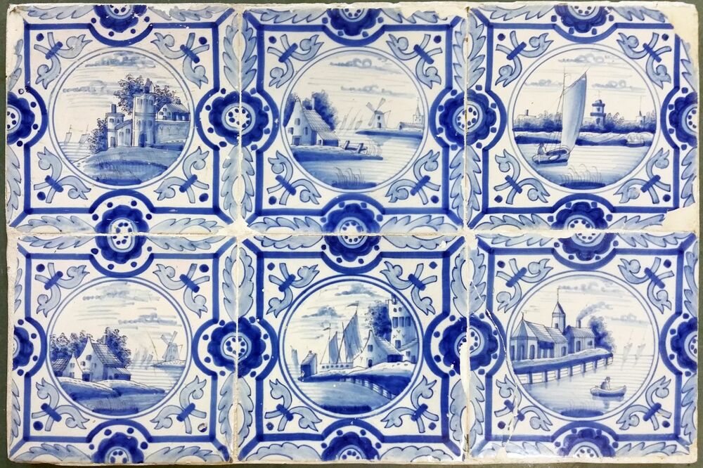 Tegelveld bestaande uit zes tegels van aardewerk met...
