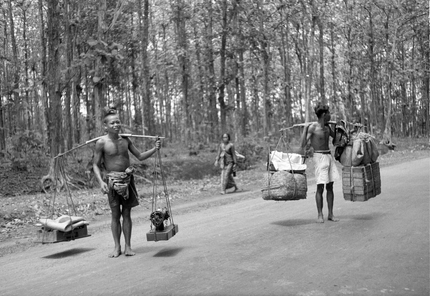 Vervoer met een draagstok van onder meer een naaimac...