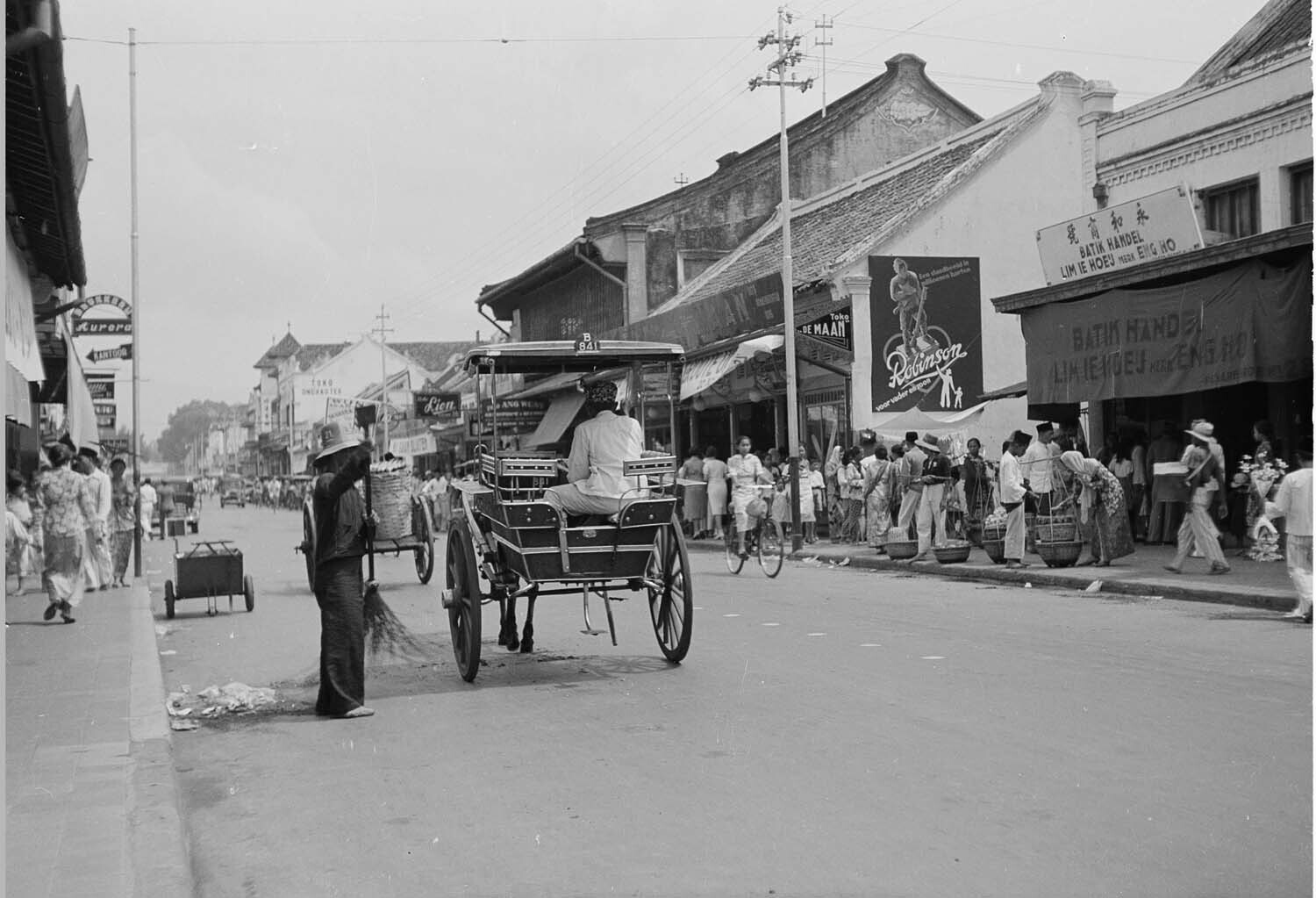 Straatgezicht met onder meer een Chinese batikwinkel...