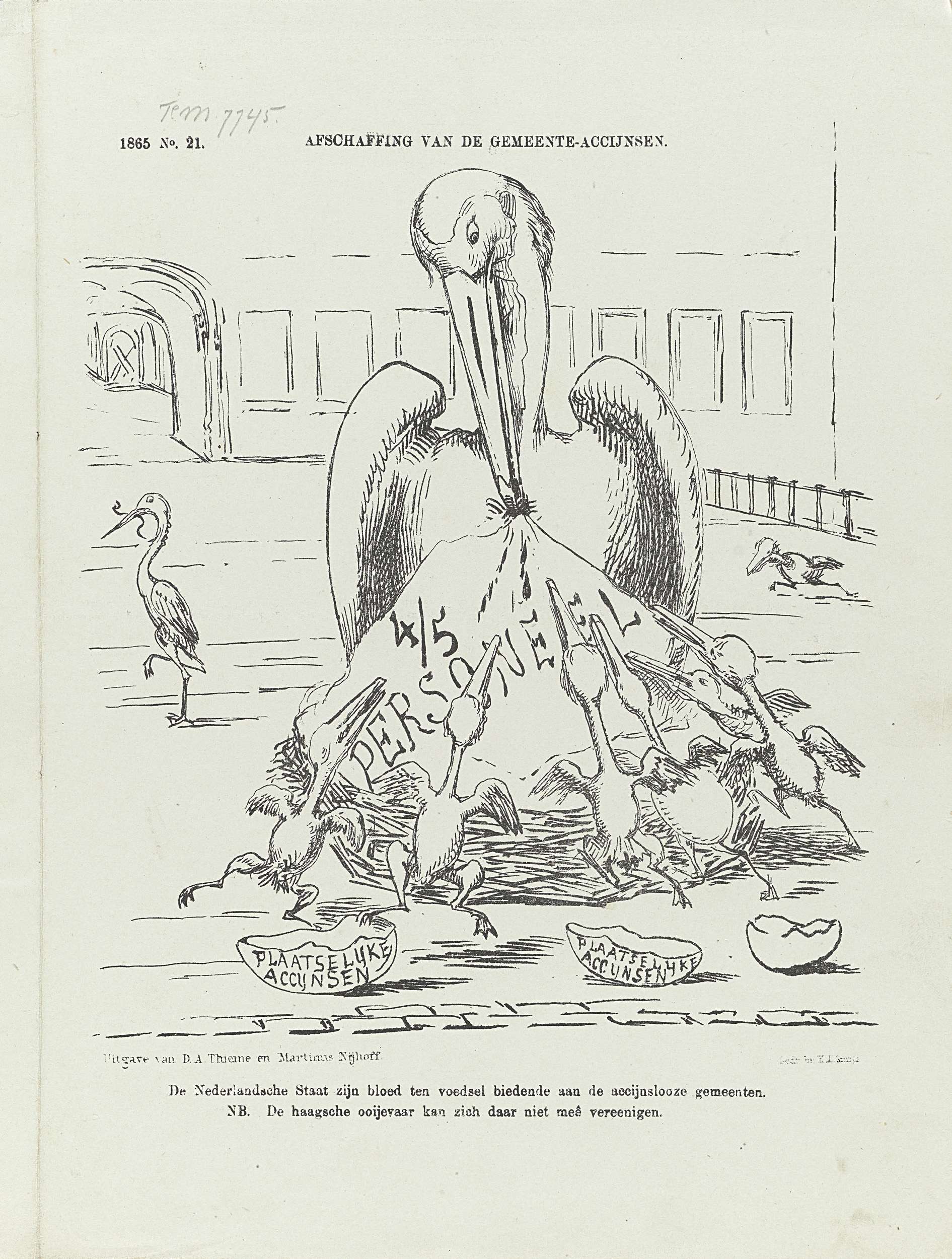 Spotprent op de afschaffing van de gemeenteaccijnzen...
