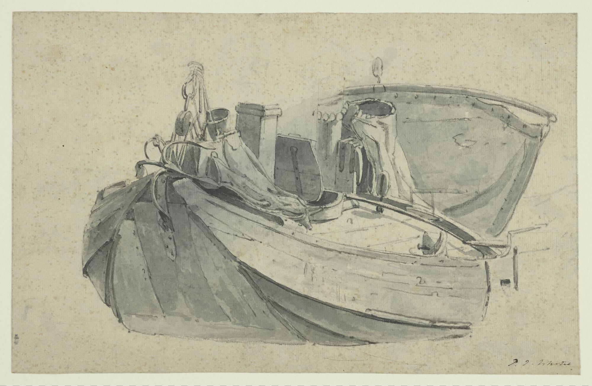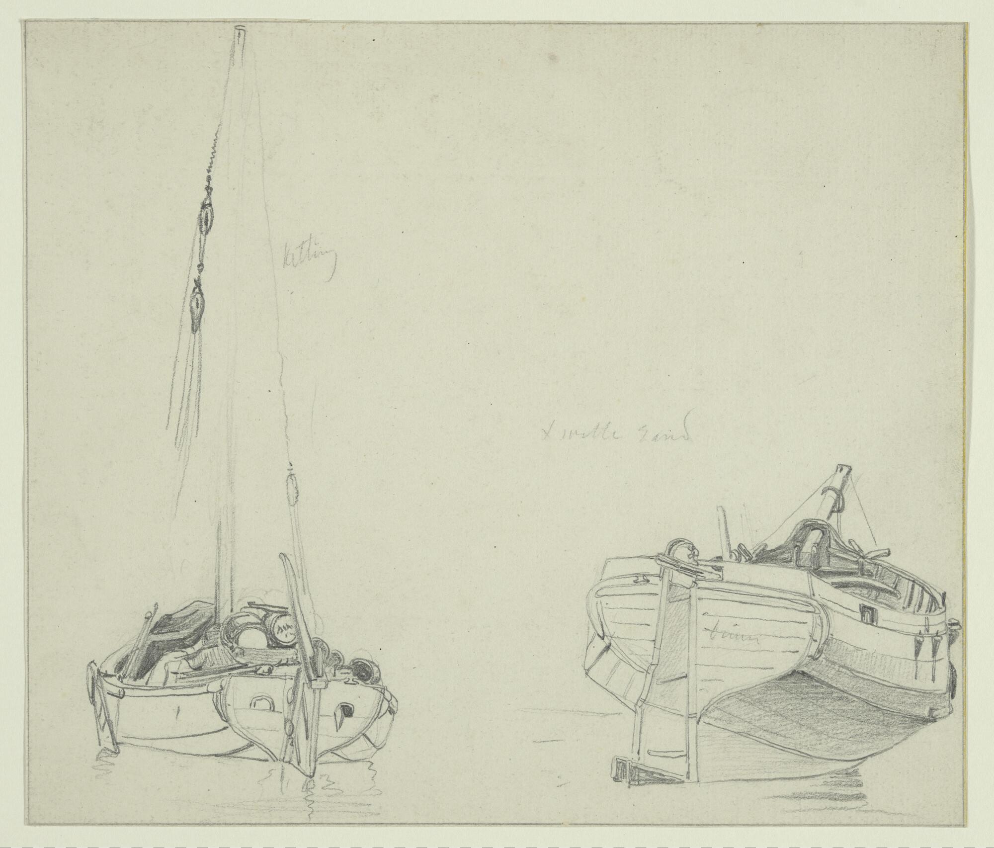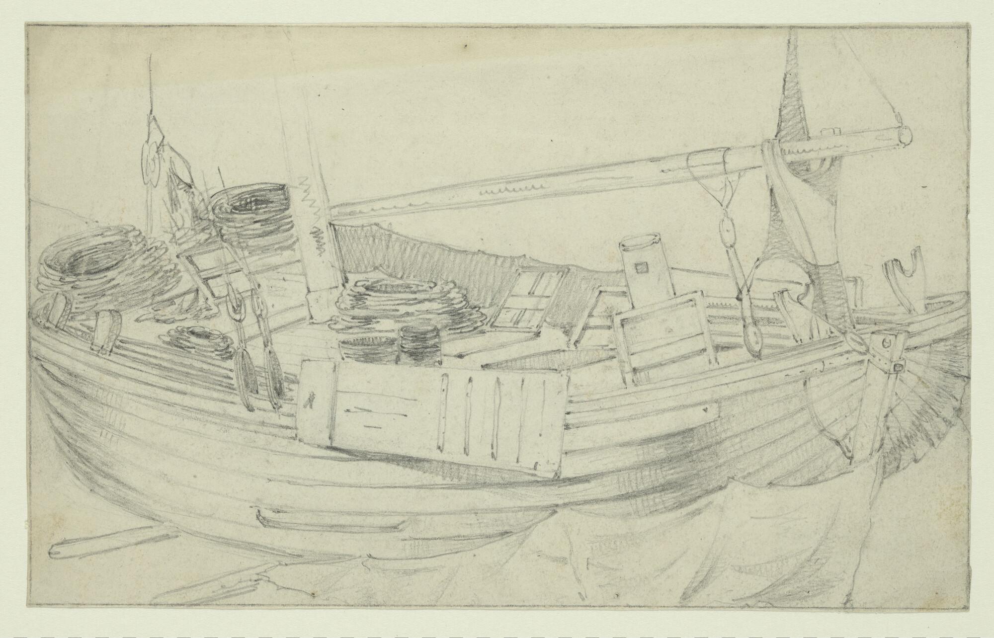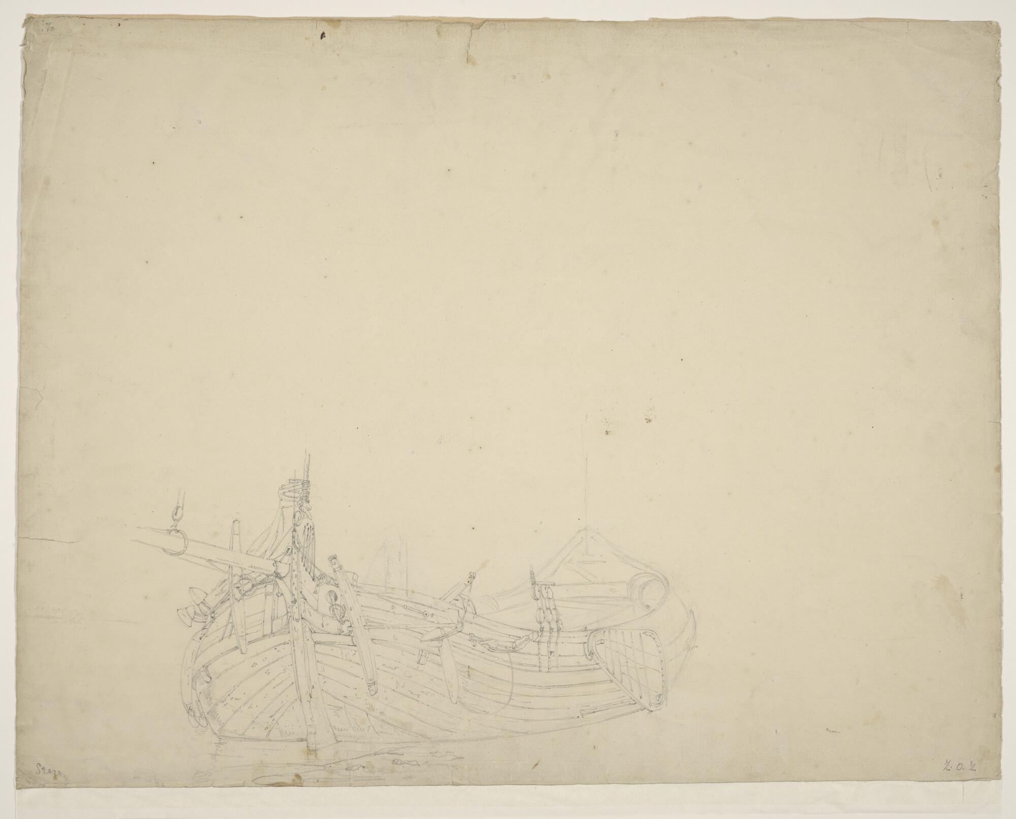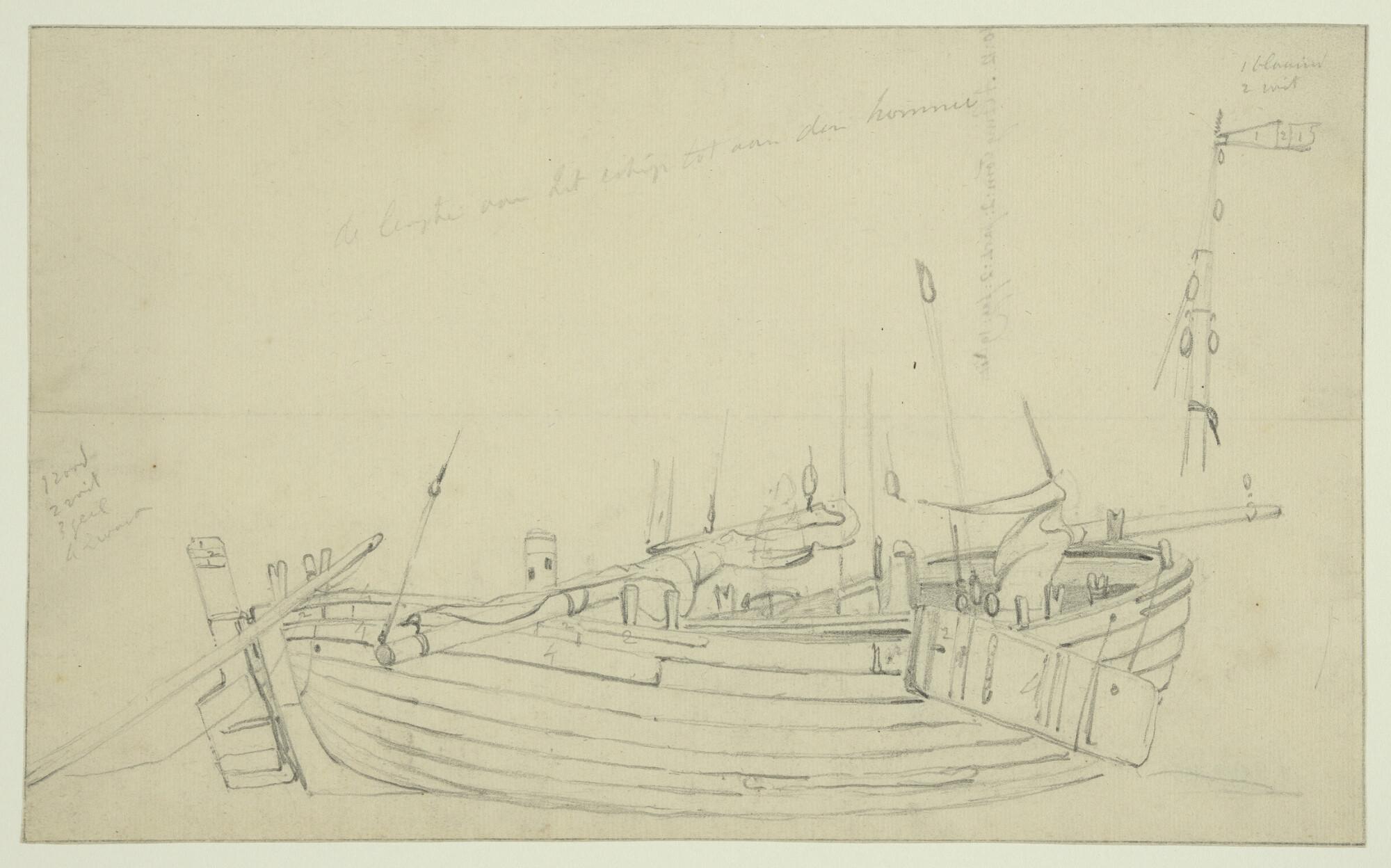 Een Scheveningse garnalenschuit. [Verso: een roeiboo...