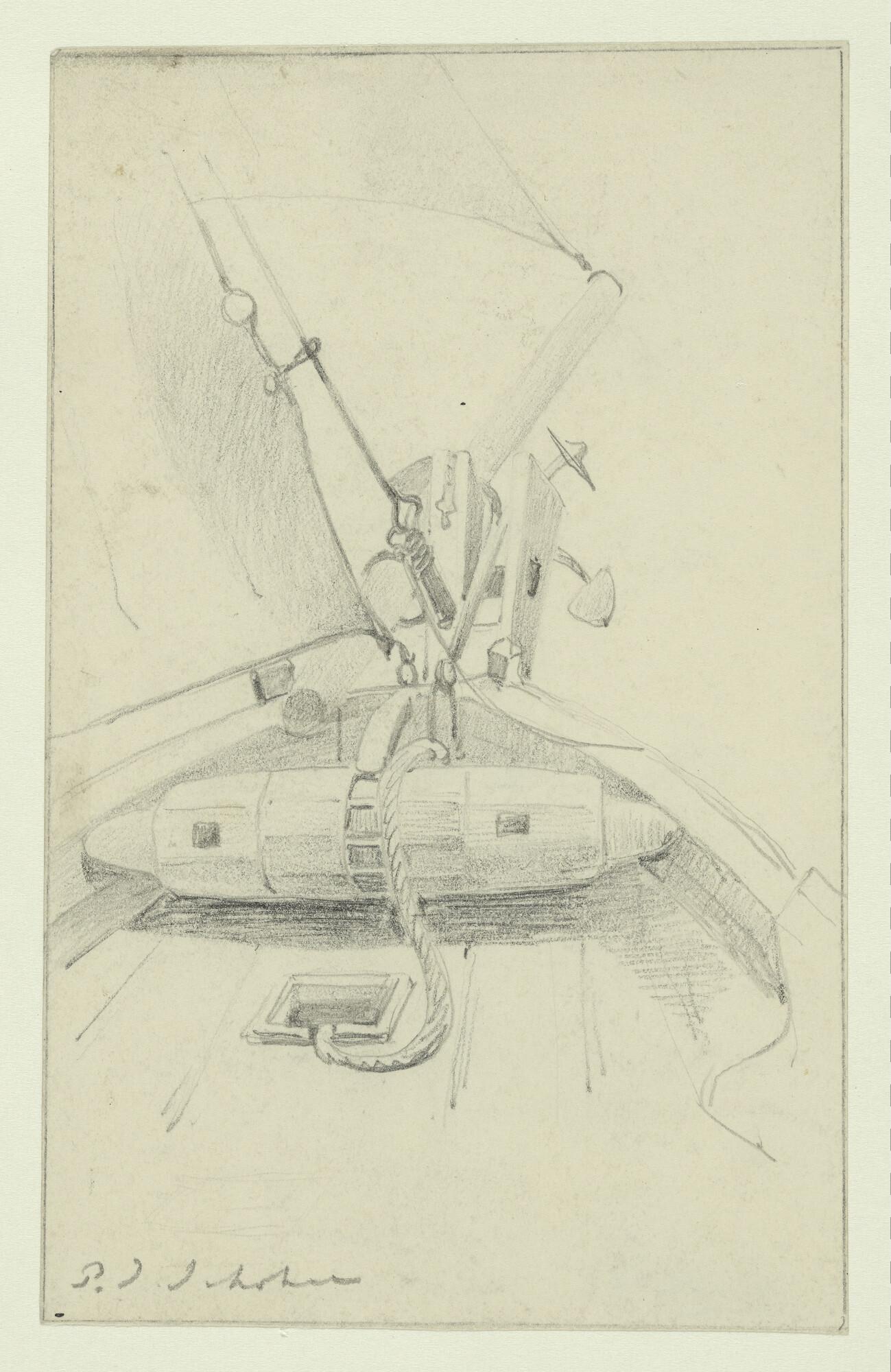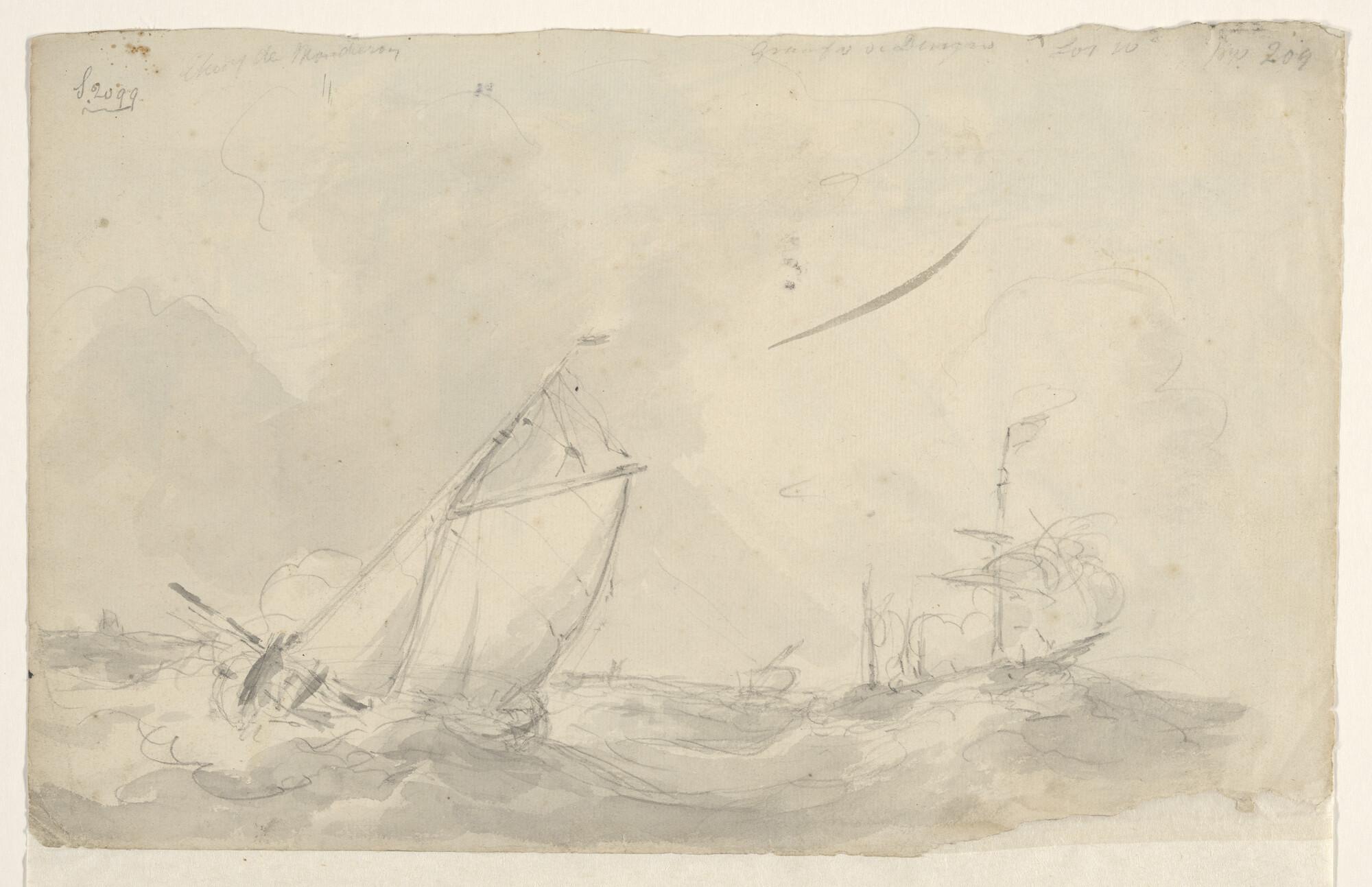 Een tjalk en een masttop