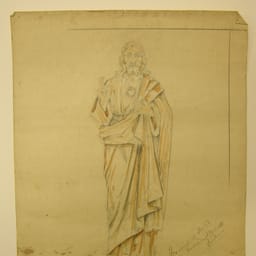 Stenen beeld van jongeling met zwaard
