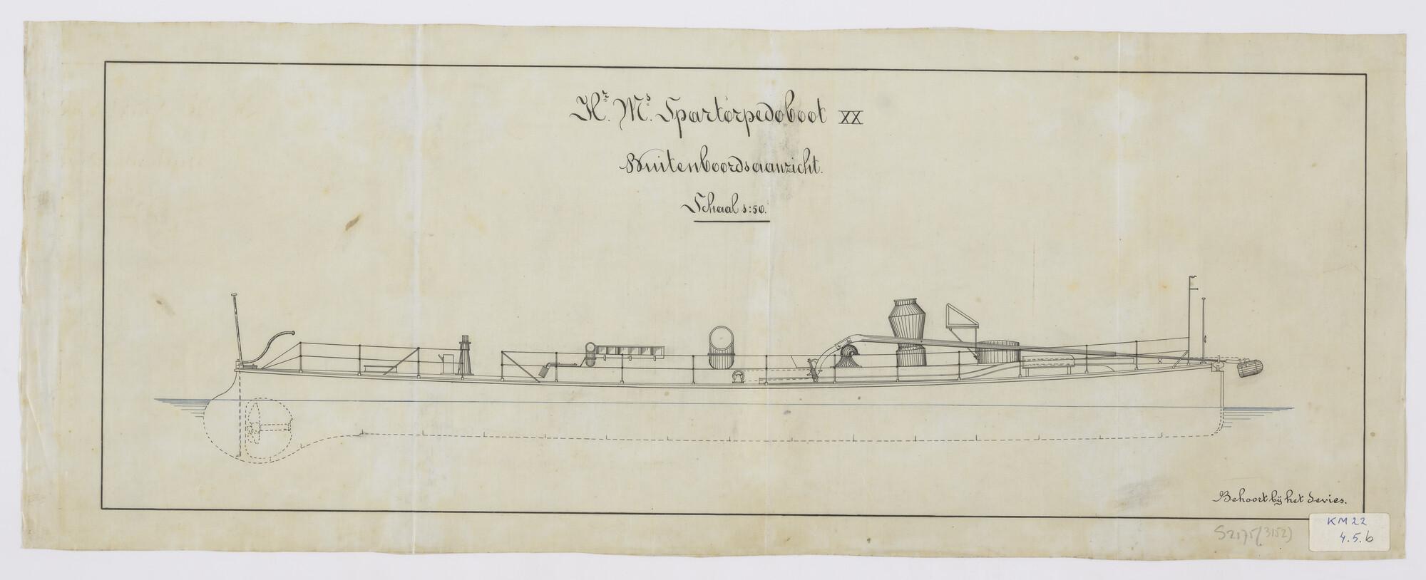 Zijaanzicht tot op de kiel van spartorpedoboot Zr.Ms...
