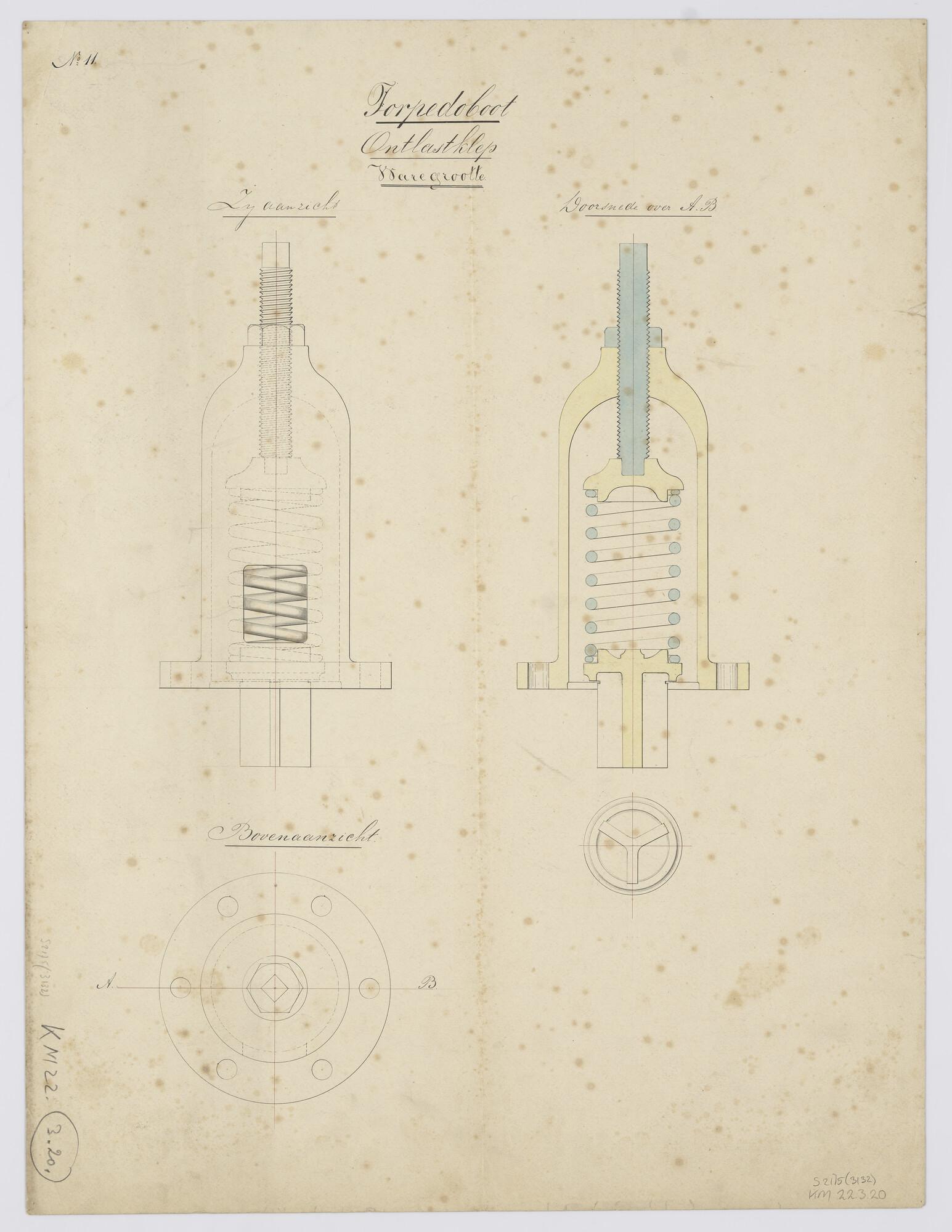 Aanzichten en doorsneden van de ontlastklep van (ver...