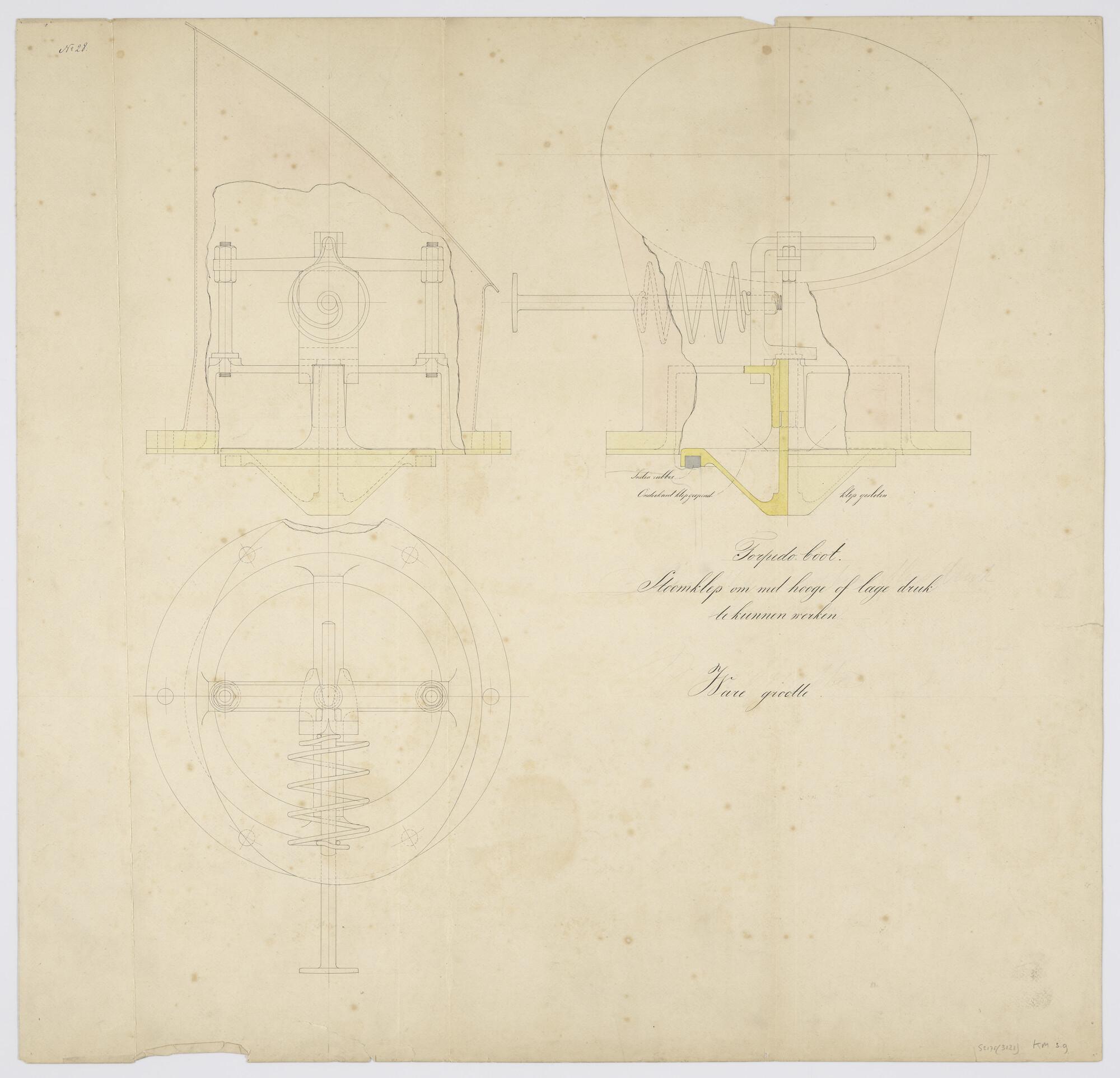 Doorsneden en aanzichten van de stoomschuif hogedruk...