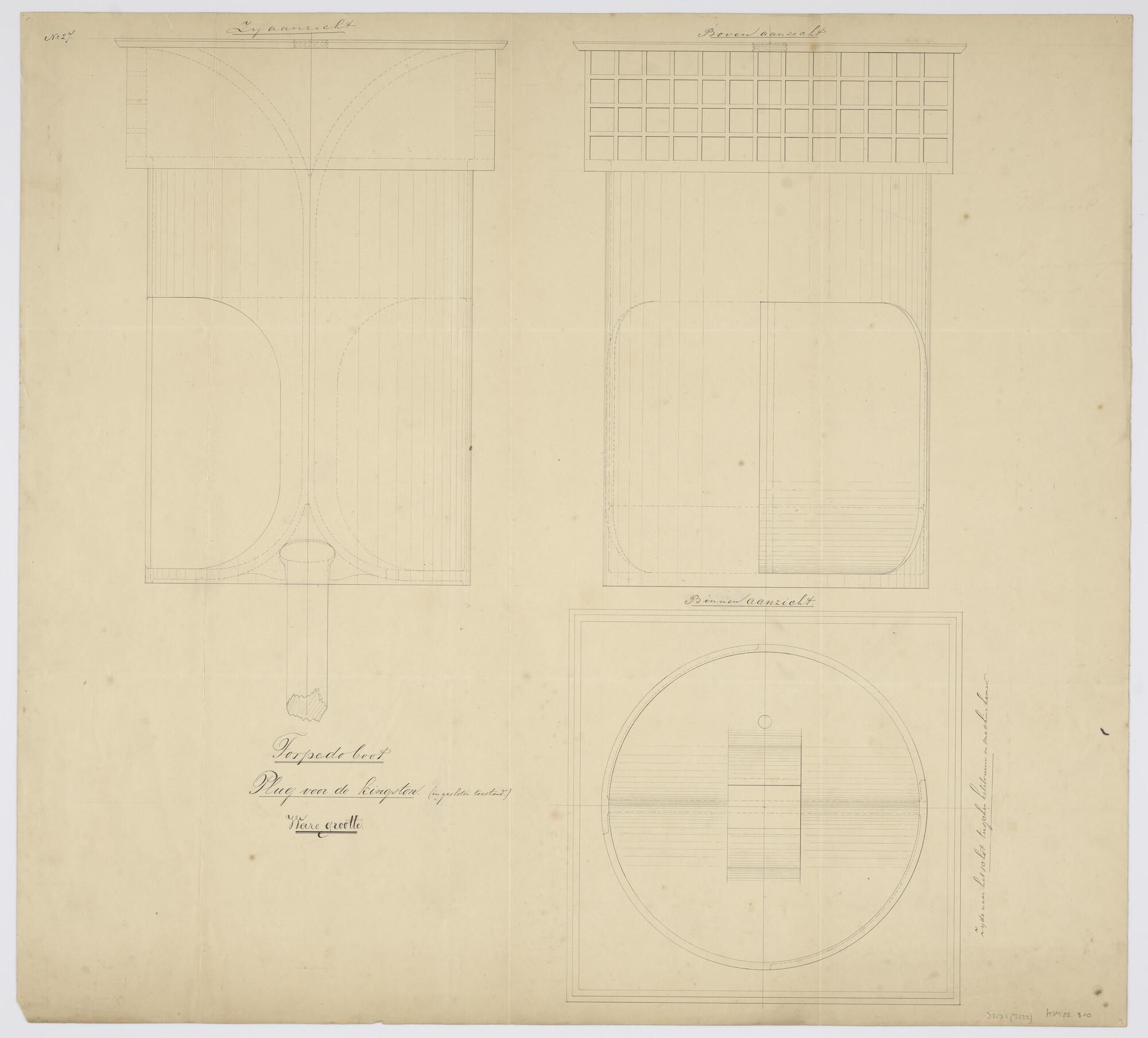 Boven-, binnen- en zijaanzicht van de plug voor de K...