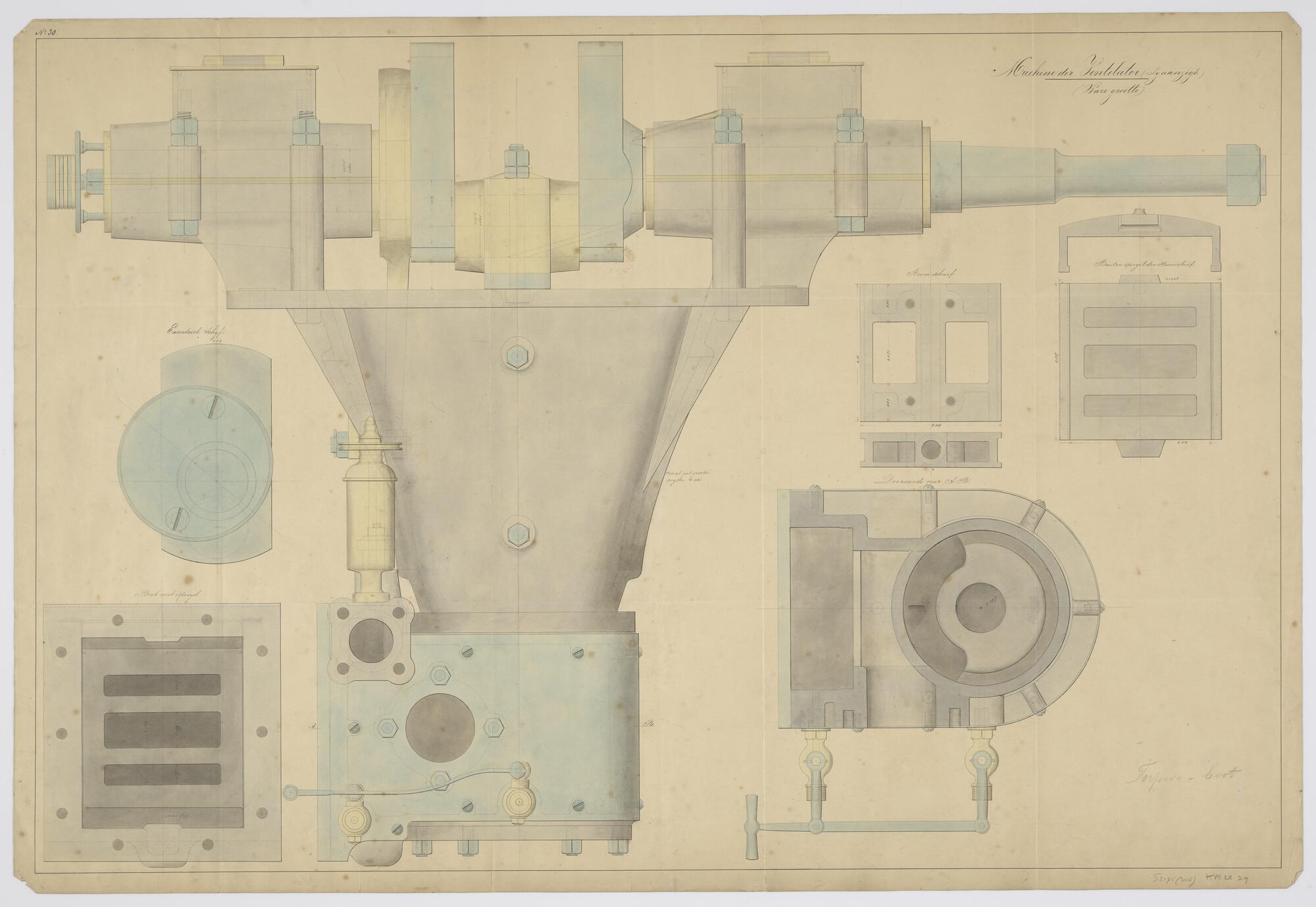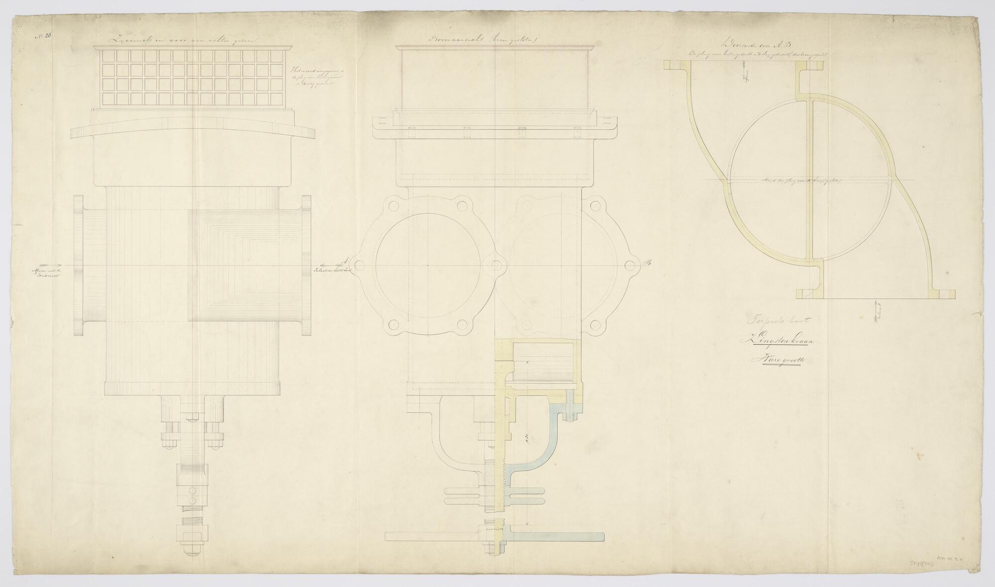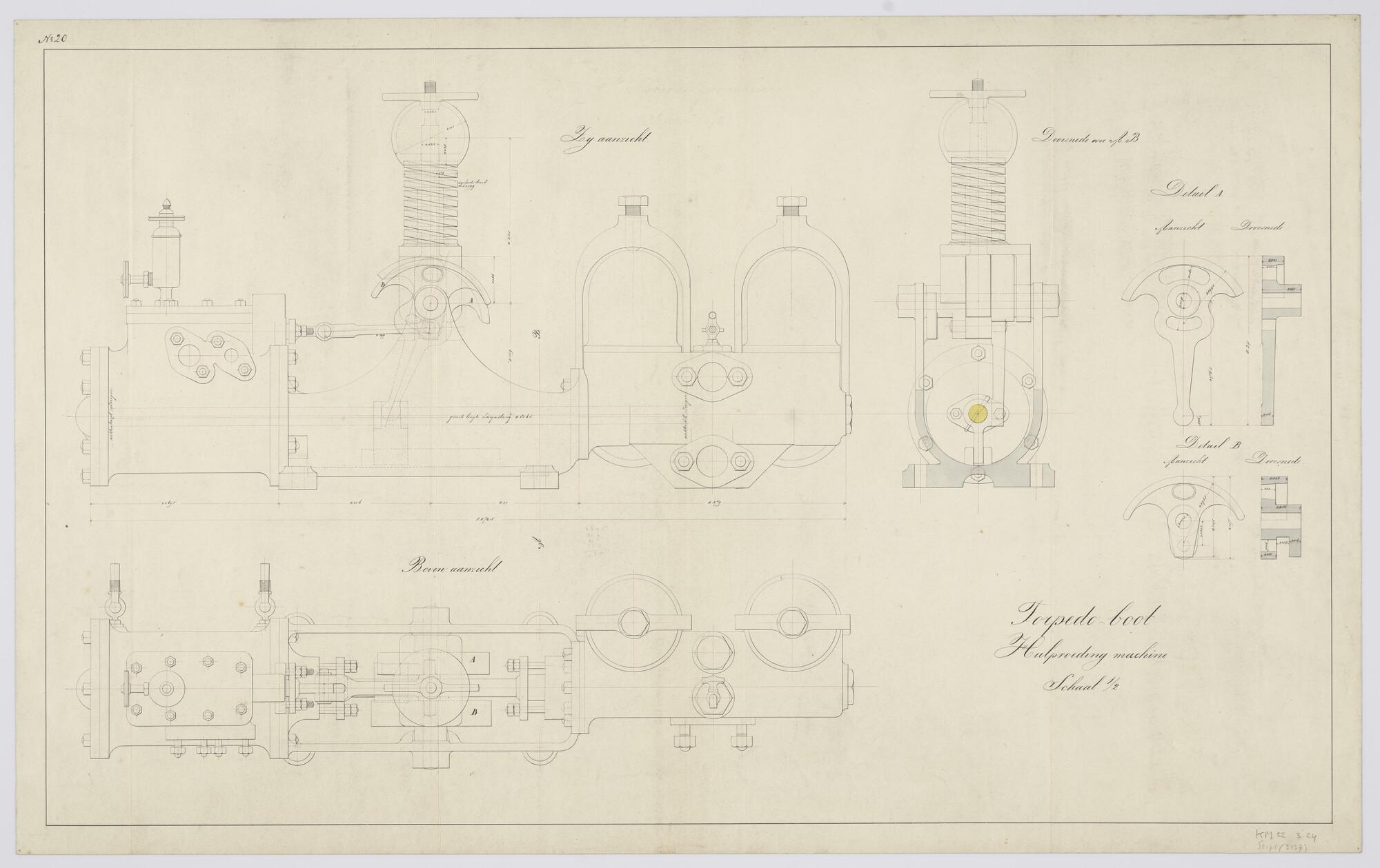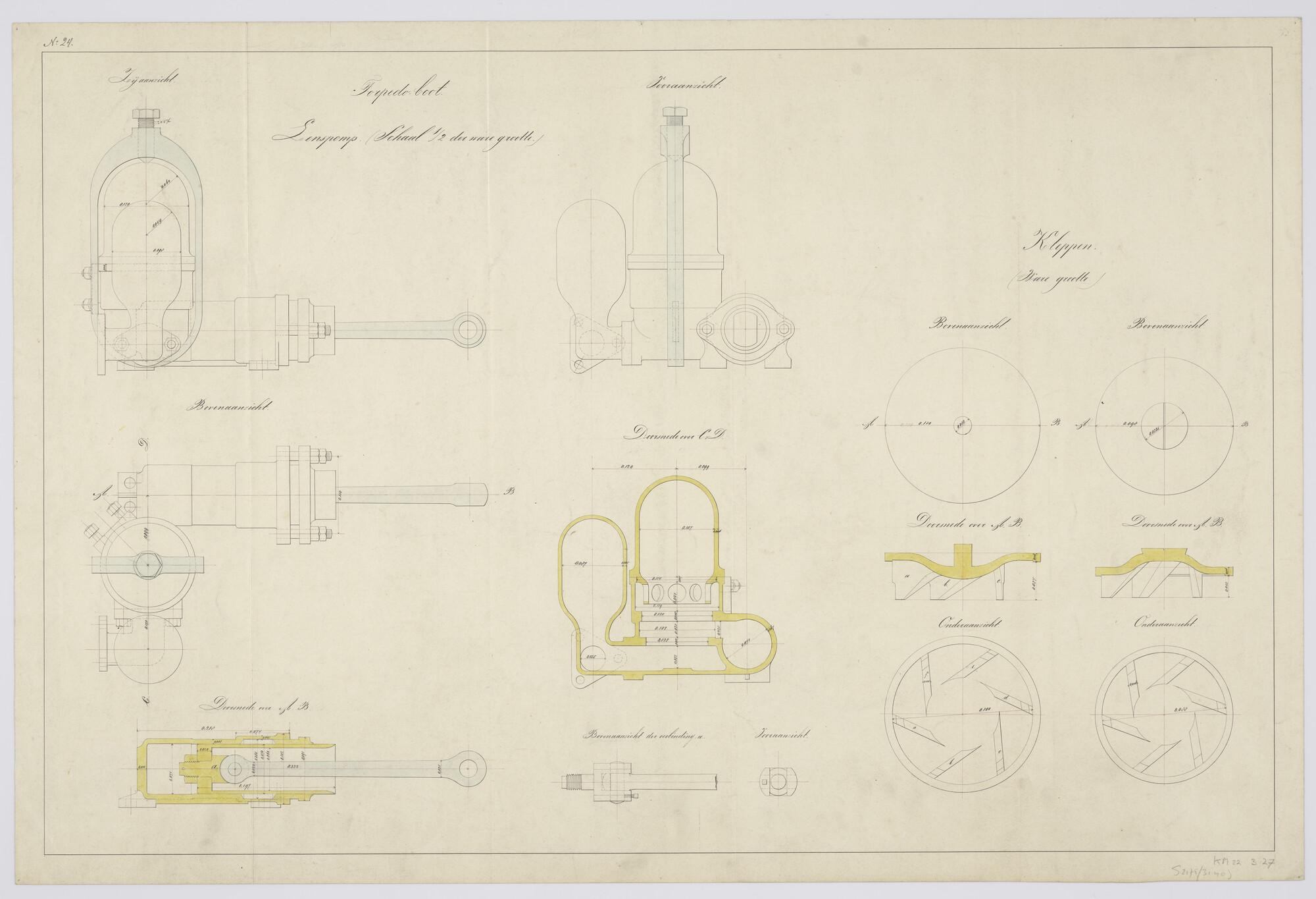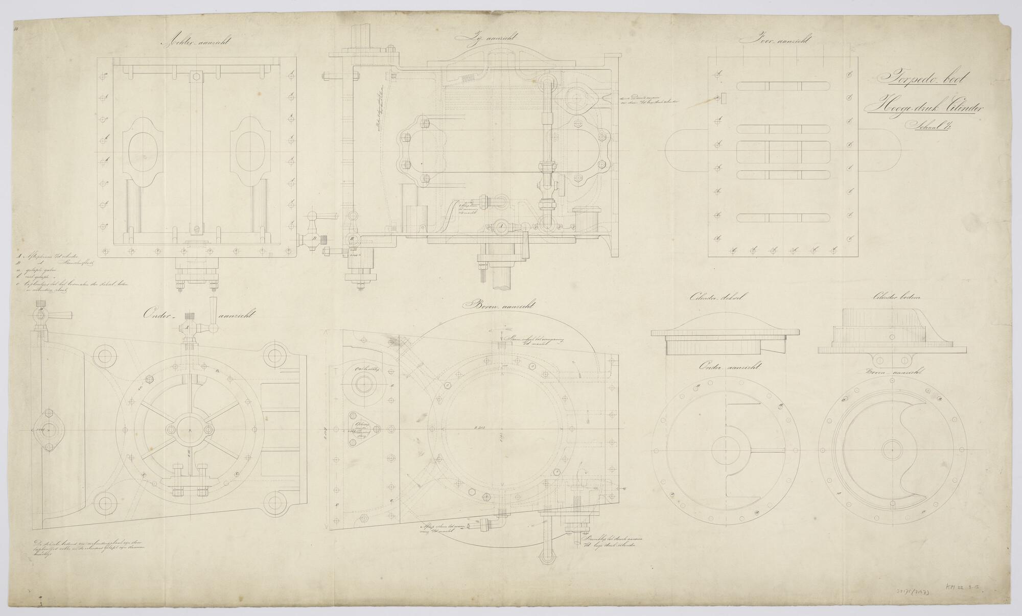 Aanzichten en doorsneden van de cilinder der hulpvoe...