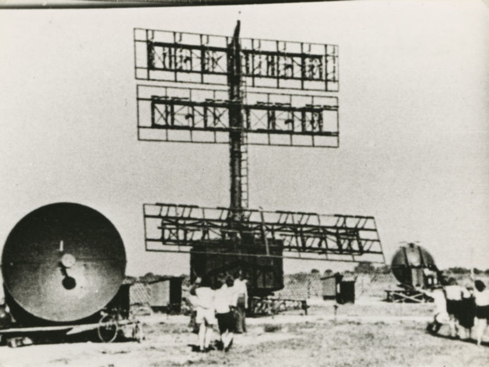 Foto van Duitse radarinstallatie. Tekst achterop: "N...