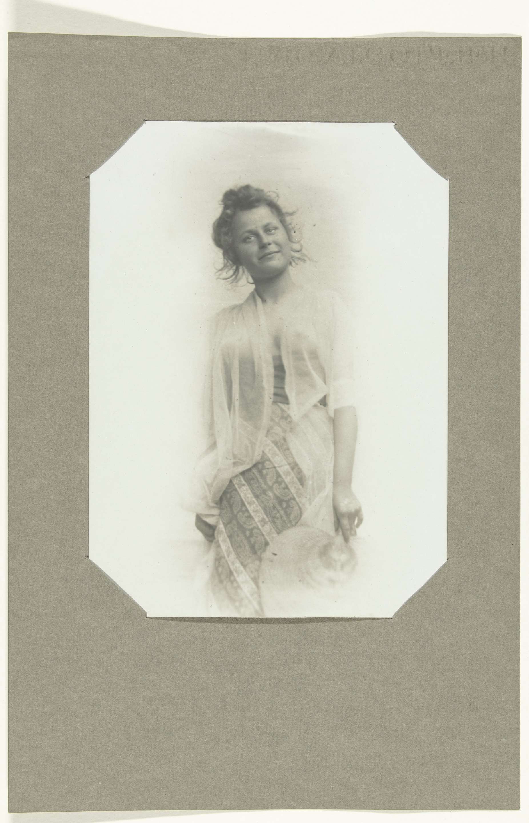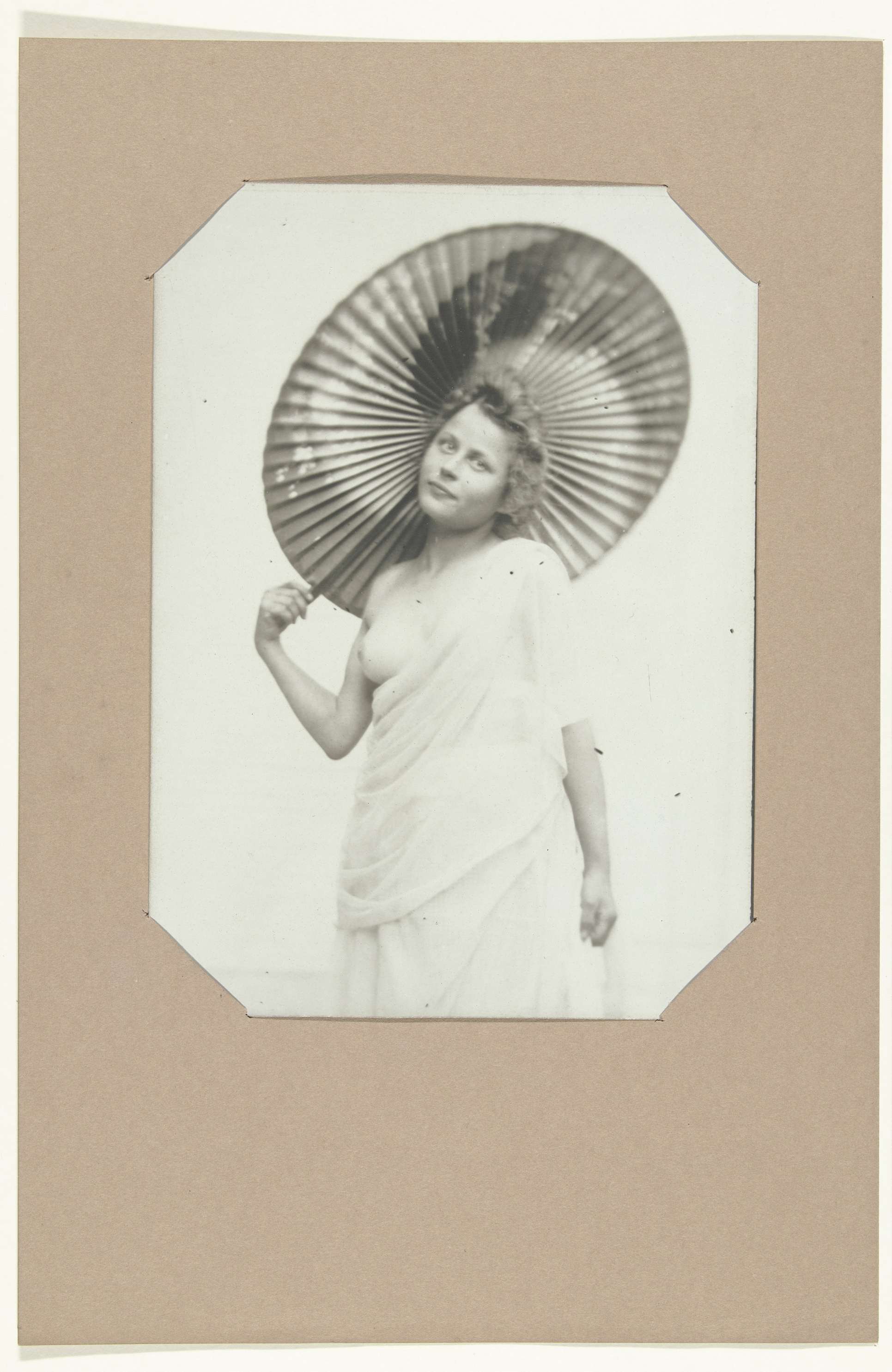 Portret van een onbekende halfnaakte vrouw met parasol