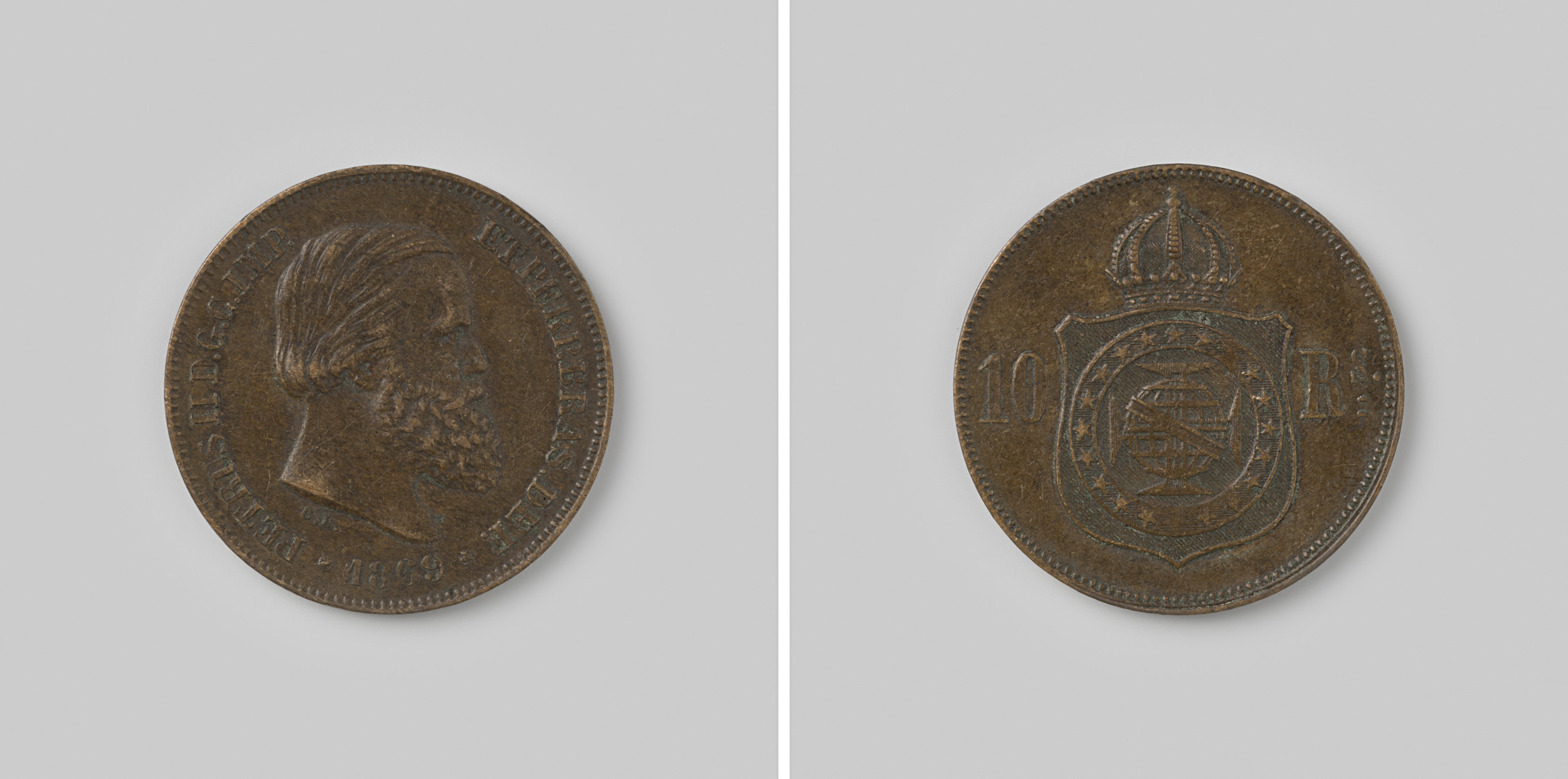 10 reis van het keizerrijk Brazilië van D. Pedro II,...