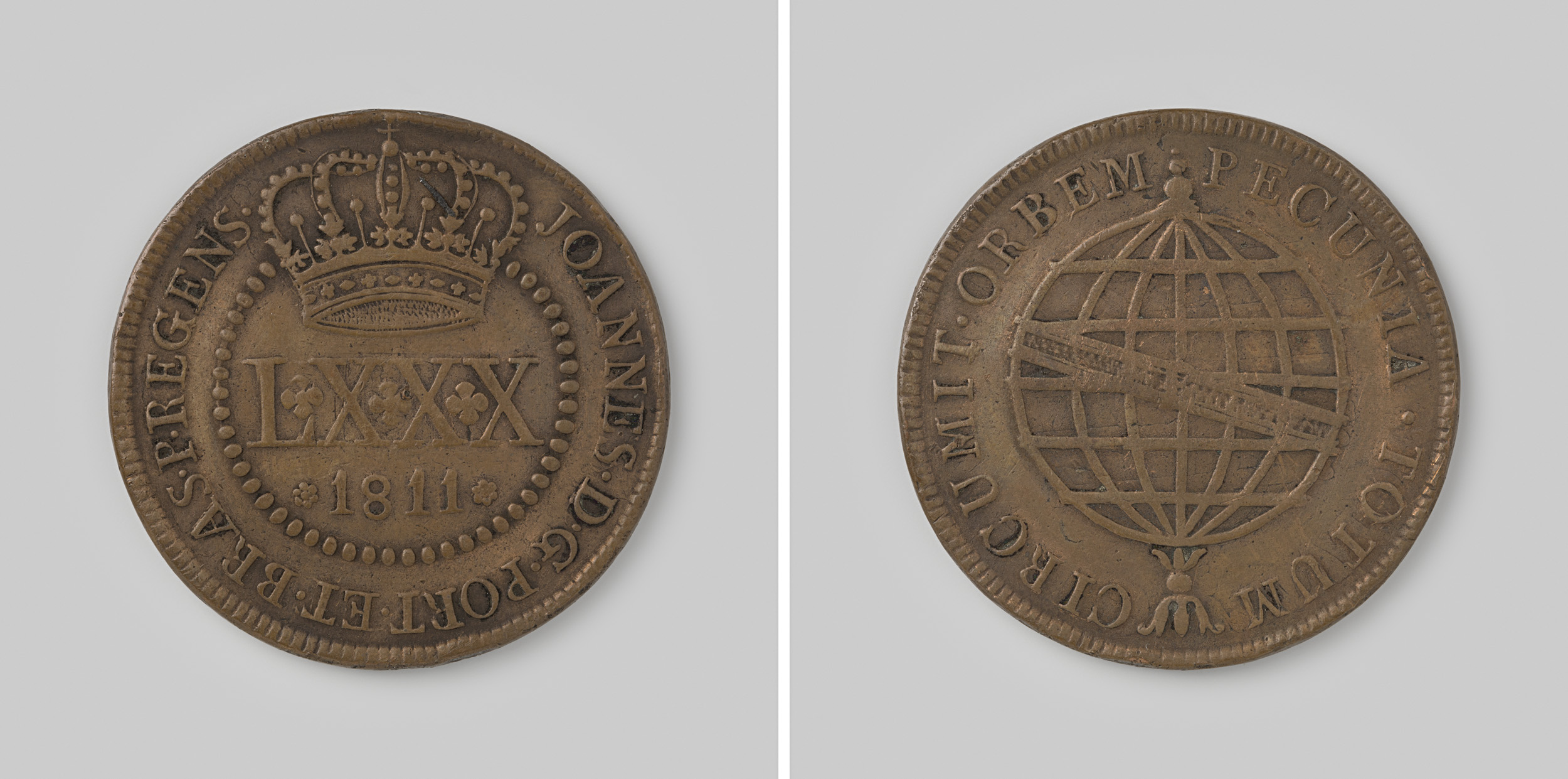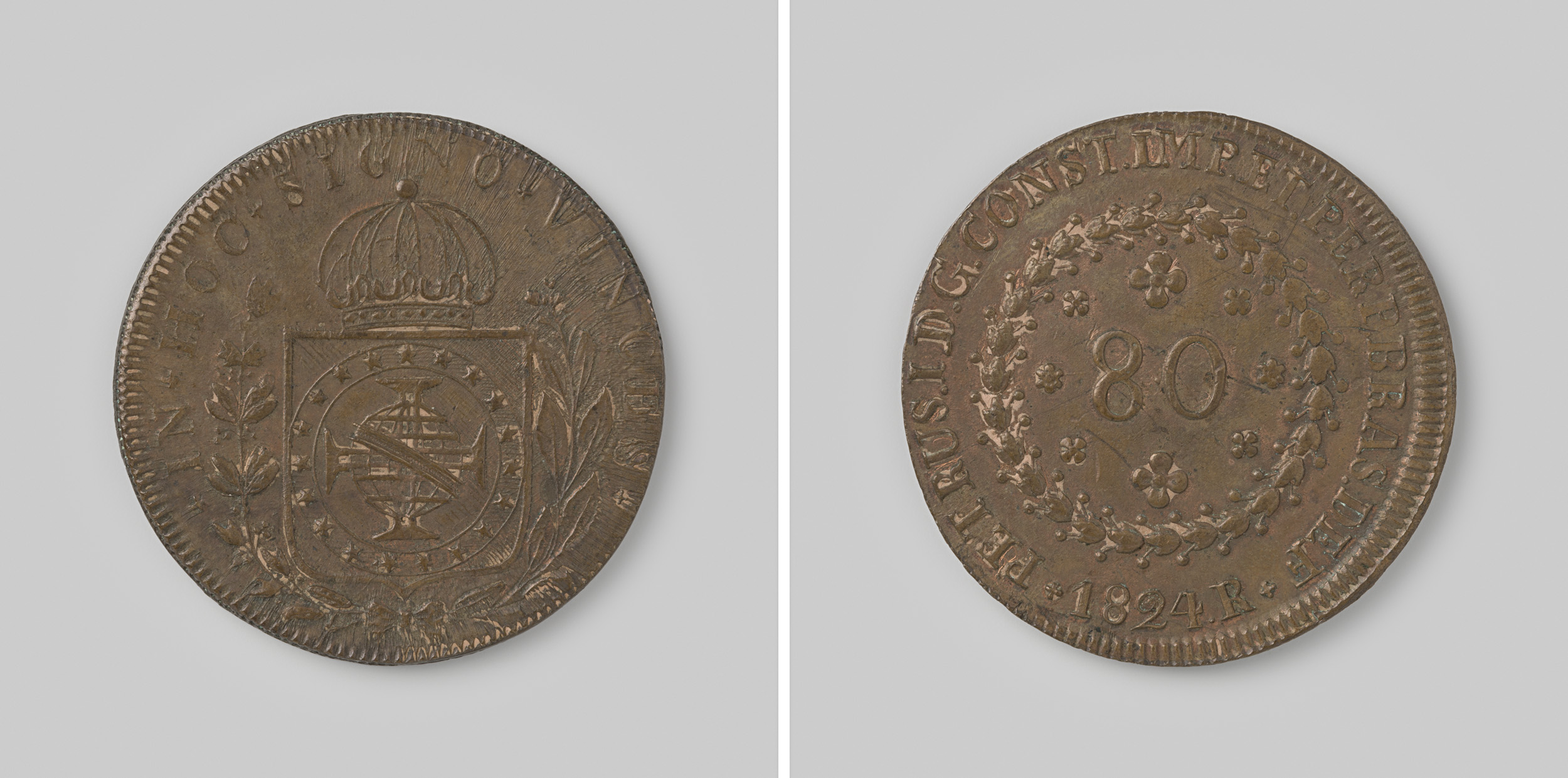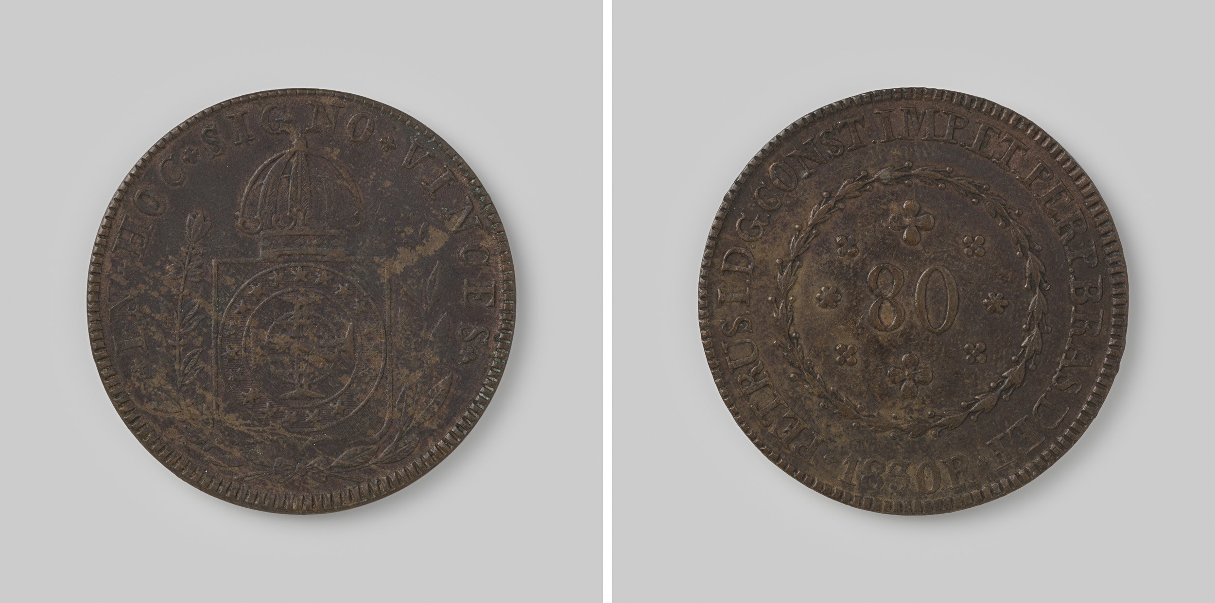80 reis van het keizerrijk Brazilië van D. Pedro I, ...