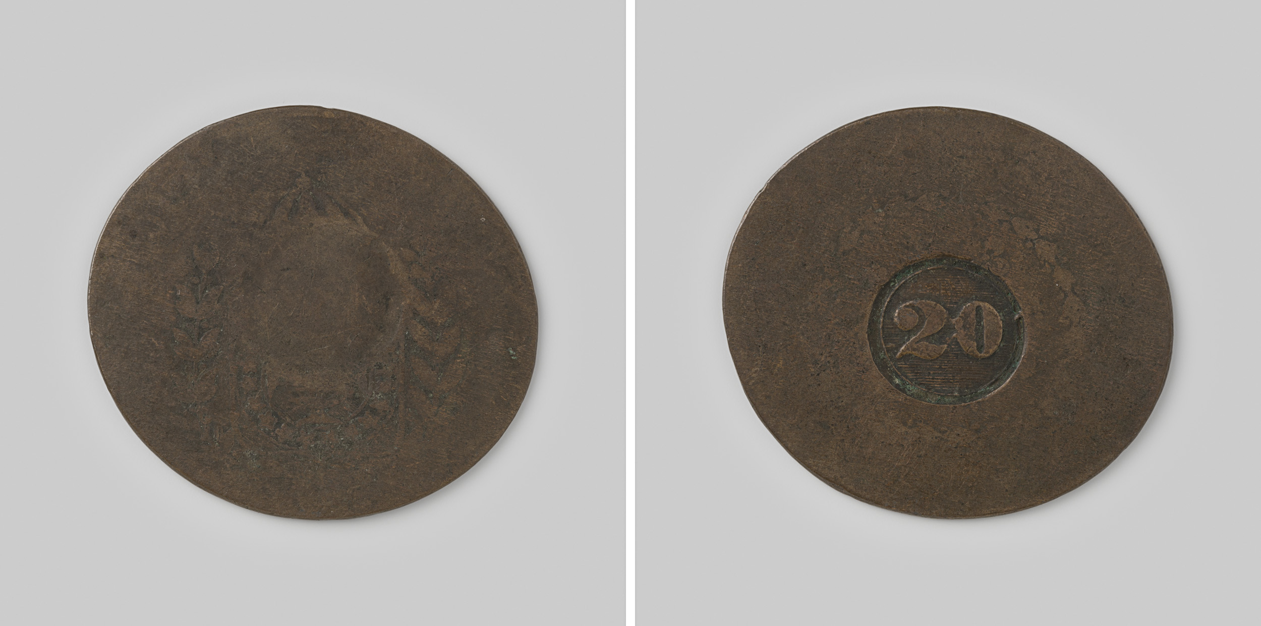 2 sols uit Frankrijk van koning Lodewijk XV, ingeste...