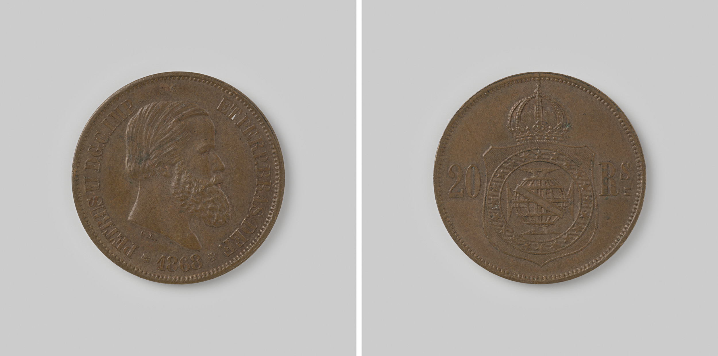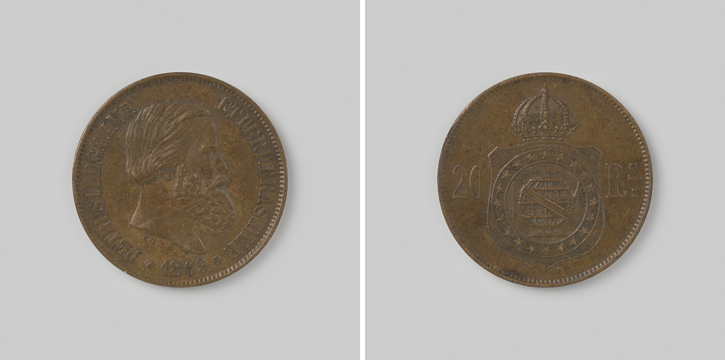 20 reis van het keizerrijk Brazilië van D. Pedro II,...