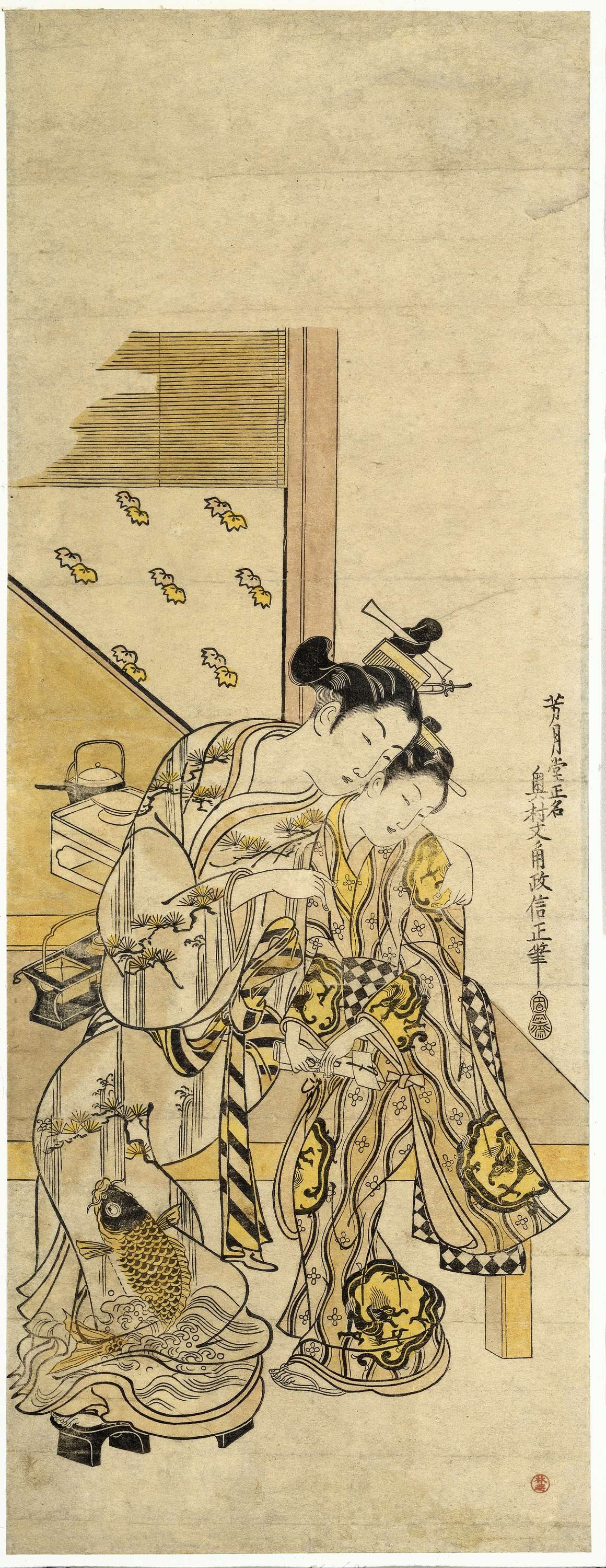 Courtisane fluisterend tegen haar kamuro