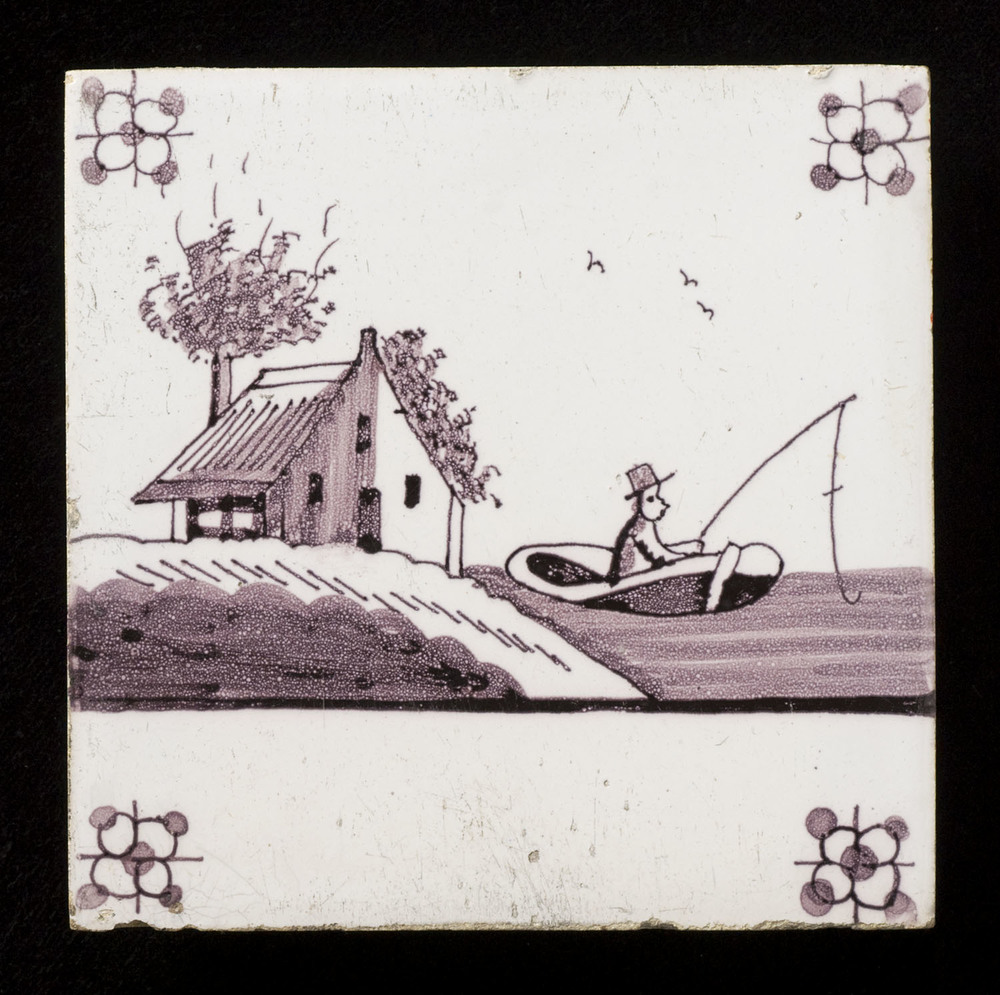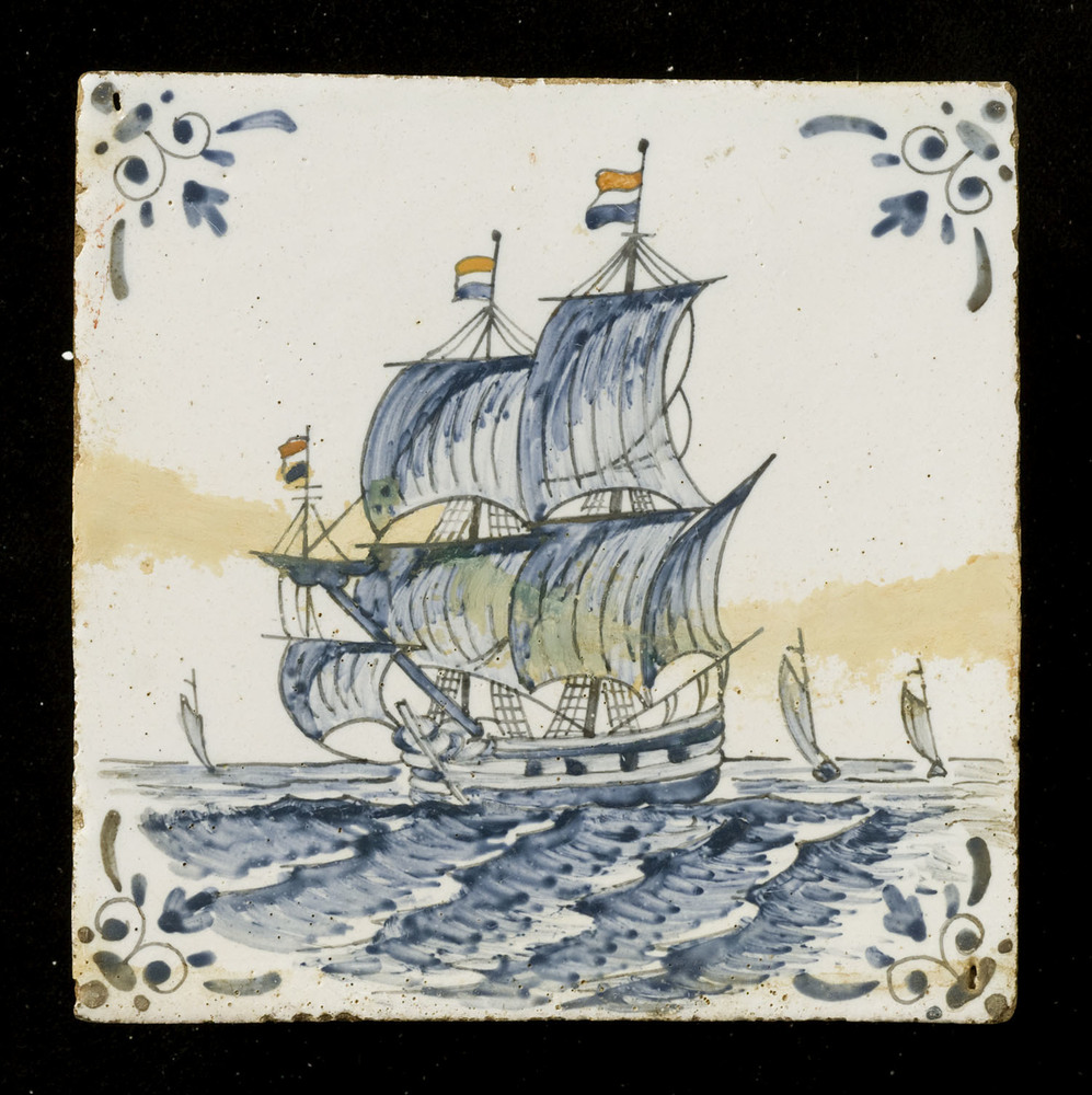 Tegel in tinglazuur, voorstellende scheepvaarttafere...