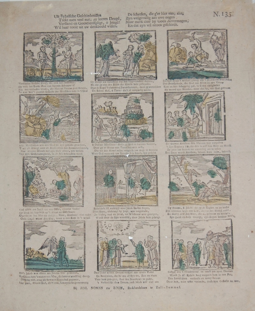 Centsprent met twaalf afbeeldingen in kleur over epi...