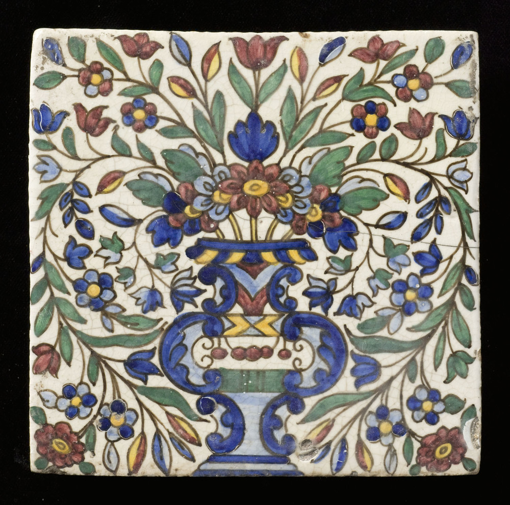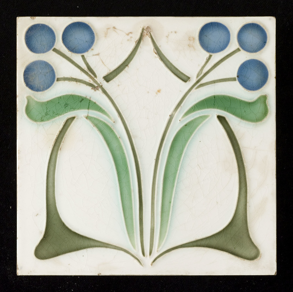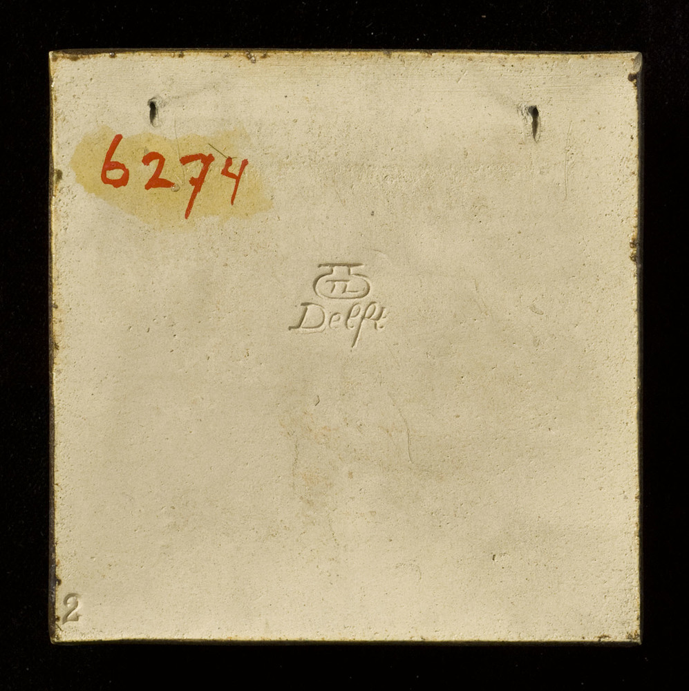 Tegel van keramiek, tinglazuur, voorstellende een bl...