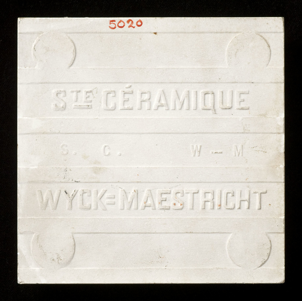 Tegel in reliëf, met voorstelling: twee gestileerde ...