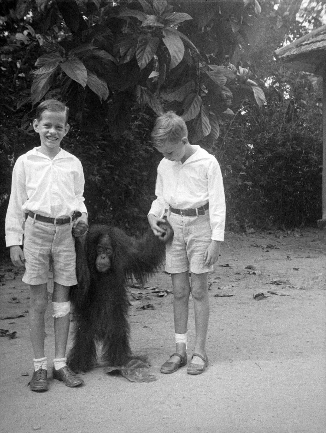 De broers Henk en Hans Japing met een orang-oetang i...